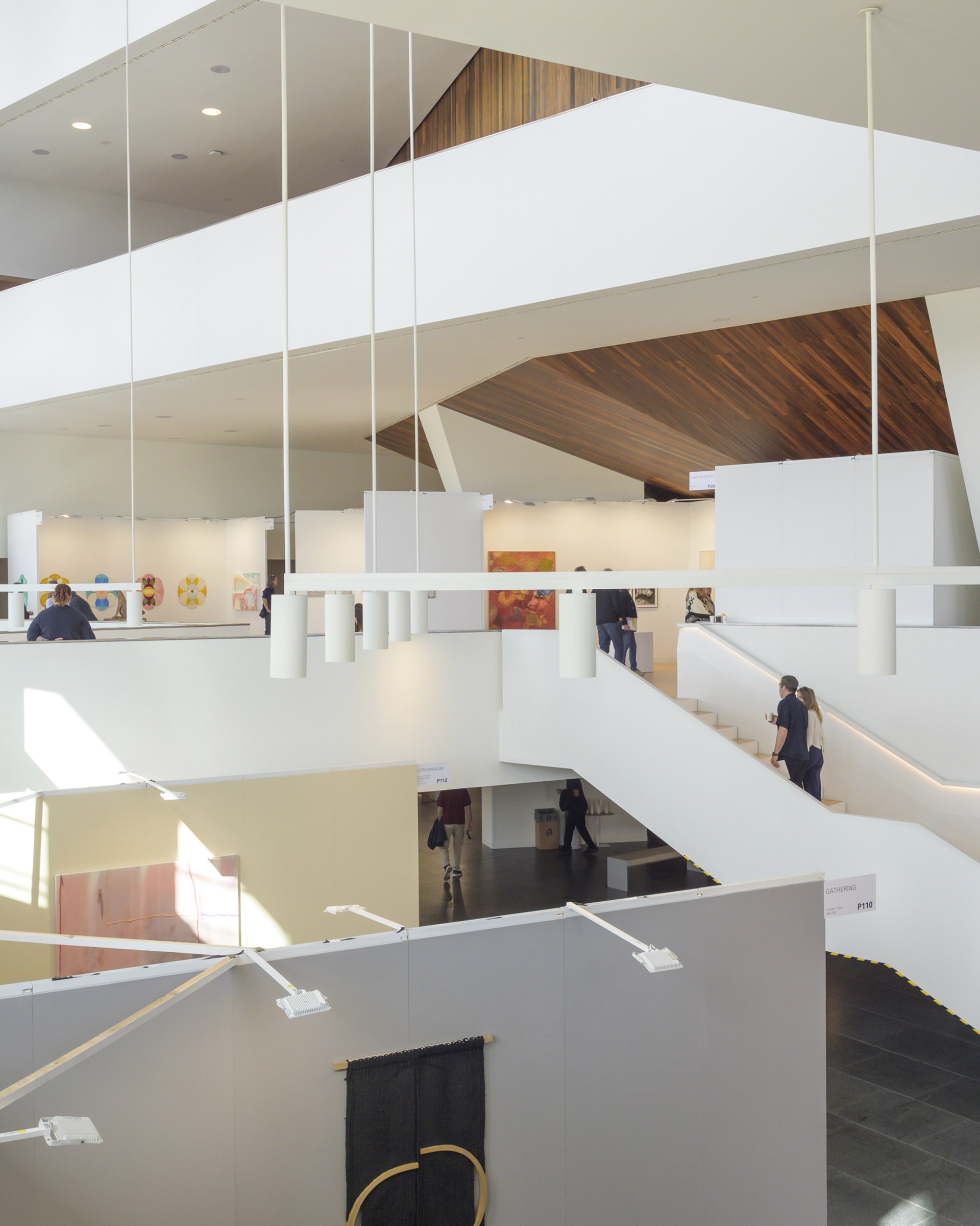 Alla base dei tre piani lungo cui si sviluppa l'edificio si scorge la vegetazione mediterranea che prelude alla spiaggia, e al suo confine l'acqua azzurra. Il contesto stende un tappeto emotivo rilassato lungo cui i collezionisti e appassionati superano i primi booth. Ne troveranno 88, provenienti da 20 paesi, inebriati dalle belle speranze della novità. Le sensazioni sembrano diverse, rispetto al 2007, quando Art Cologne provò la tappa a Palma, posizionandosi nell'aeroporto ma non riuscendo a lasciare il segno. Quasi venti primavere dopo l'ente ci riprova, inserendosi con tatto in un contesto che nel frattempo si è evoluto. Il tessuto urbano è ricamato di gallerie (circa 16 di queste sono in fiera, su 32 spagnole; 26 le tedesche), impreziosito dall'arrivo due anni fa del colosso Hauser & Wirth (oggi assente, domani chissà). E poi l'Es Baluard Museum, che nella sola settimana dell'arte (questa appena passata) ha all'attivo quattro mostre, e sulle colline sopra la città la Fundació Miró.
