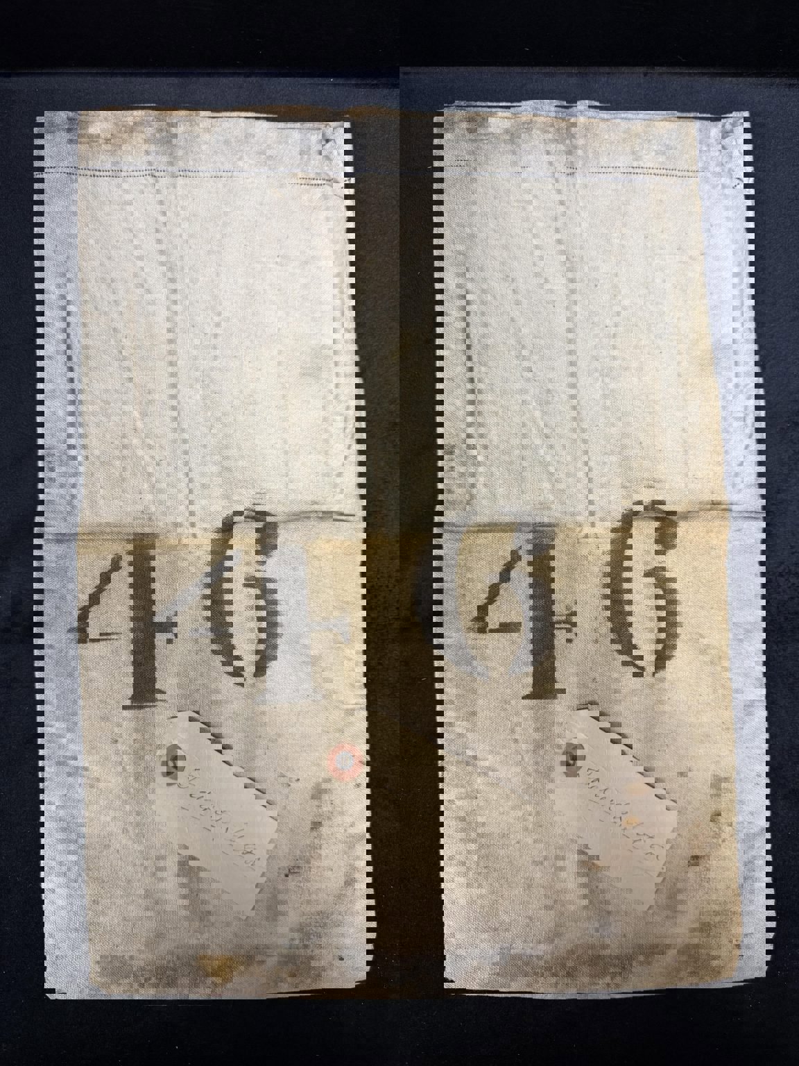 La sacca di tela dove sono stati ritrovati gli effetti personali di Frederick Sutton. Photo courtesy of Henry Alridge and Sons