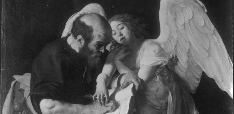 Michelangelo Merisi da Caravaggio, «San Matteo con l’angelo», prima del 1602 (particolare). © Staatliche Museen zu Berlin, Gemäldegalerie