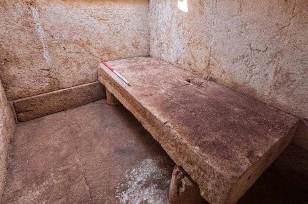 L’interno della tomba monumentale scoperta in Albania