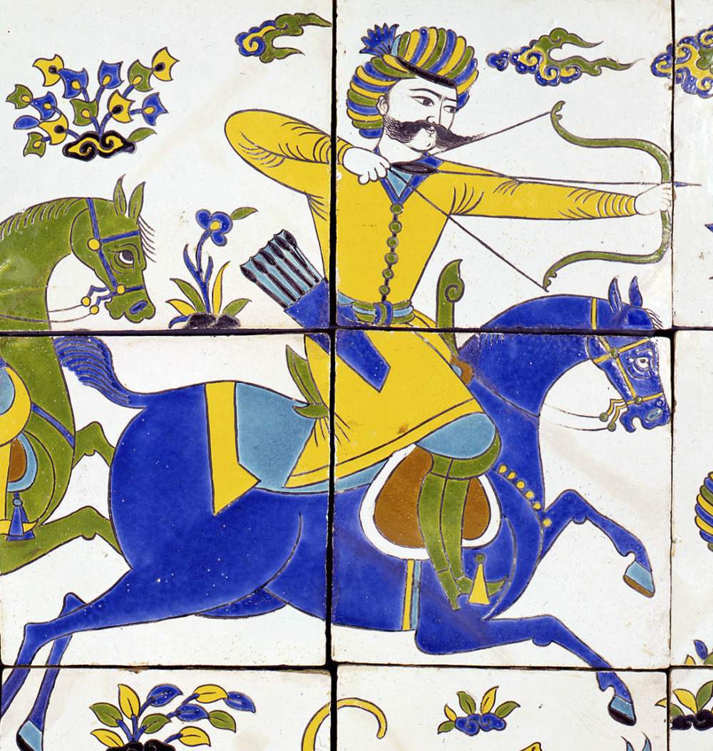 Piiastrella di maiolica con scena di caccia, Isfahan, Persia, fine del XVII secolo. Foto: Roman Raacke