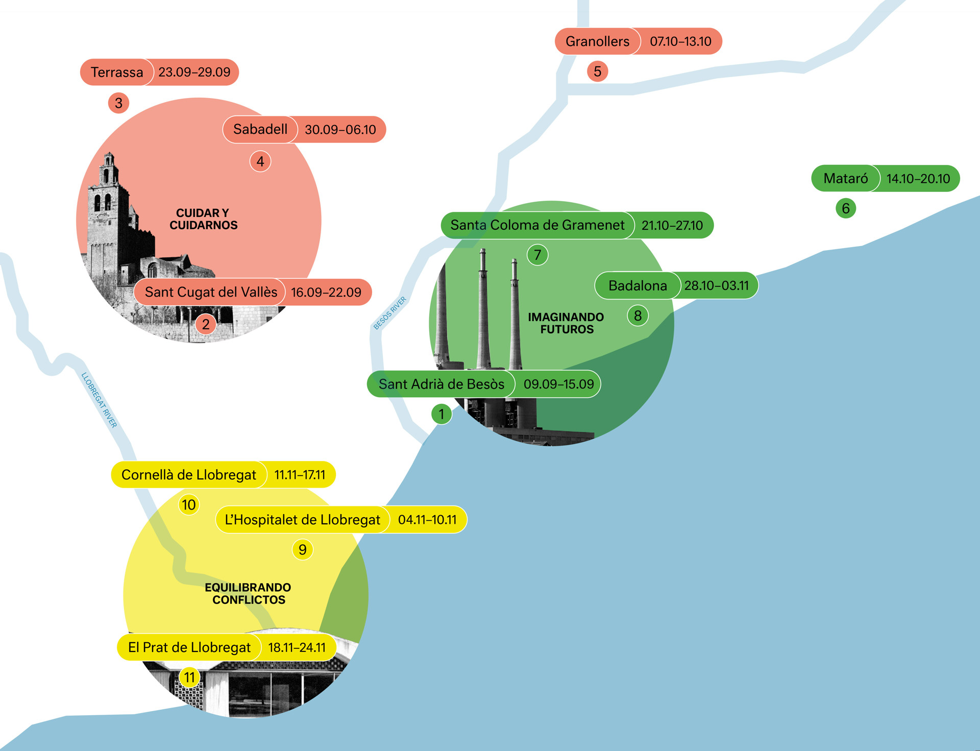 Molti spazi sono vestigia della rivoluzione industriale catalana, avviata dalle fabbriche tessili a metà dell’800, come Can Trinxet de L’Hospitalet, dove espone l’italiana di origini senegalesi Binta Diaw che colonizza il vecchio spazio industriale con una treccia di 800 metri tessuta dalle donne della comunità africana della località. L’opera è un omaggio alle donne catturate come schiave che, è un simbolo di resistenza, nelle loro trecce nascondevano i semi per portare parte della loro vita nel loro drammatico viaggio. La Fijen non ha dimenticato neanche il passato romanico e gotico della regione, rappresentato dal Monastero di Sant Cugat e dall’insieme vescovile di Egara dove spiccano le sculture scolpite con sapone blu della sudafricana Buhlebezwe Siwani, che rappresentano le donne della sua famiglia (e lei stessa da bambina) ritratte con tenerezza, senza la durezza che, dice, accompagna sempre le immagini della maternità nera. In cambio nel Monastero di Sant Cugat spiccano le sculture totemiche di Martin Toloku discendente di una famiglia di falegnami del Ghana, che scolpisce i ritratti dei suoi antenati con la convinzione che i loro spiriti continuano a vivere nei materiali da lei usati. Nei giorni della vernice, Toloku ha realizzato una performance per la quale ha imparato a ballare il flamenco, che dice essere simile ai movimenti e ai ritmi delle danze tradizionali della sua tribù. Nel giardino del chiostro le figure voluttuose di Bea Bonafini evocano dee addormentate, mentre nella storica serie «Women and Smoke» di Judy Chicago, i fuochi d’artificio e il fumo colorato servono per rappresentare le donne come dee vendicatrici o sacrificali. Tra le creazioni inedite merita un momento di attenzione il murale monumentale di Fanja Bouts in cui, in un modo apparentemente giocoso e gioioso, utilizza la satira per sferrare un pugno al capitalismo e alle sue conseguenze per il pianeta.