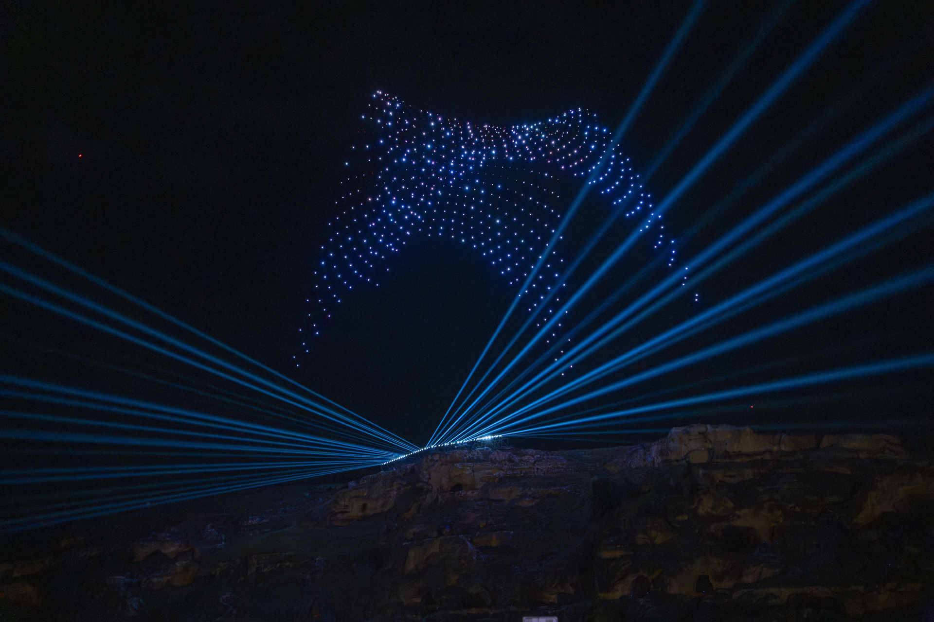 Un momento della cerimonia inaugurale di Matera «Capitale Mediterranea della Cultura e del Dialogo», droni nel cielo del Parco della Murgia Materana. © Fondazione Matera-Basilicata 2019