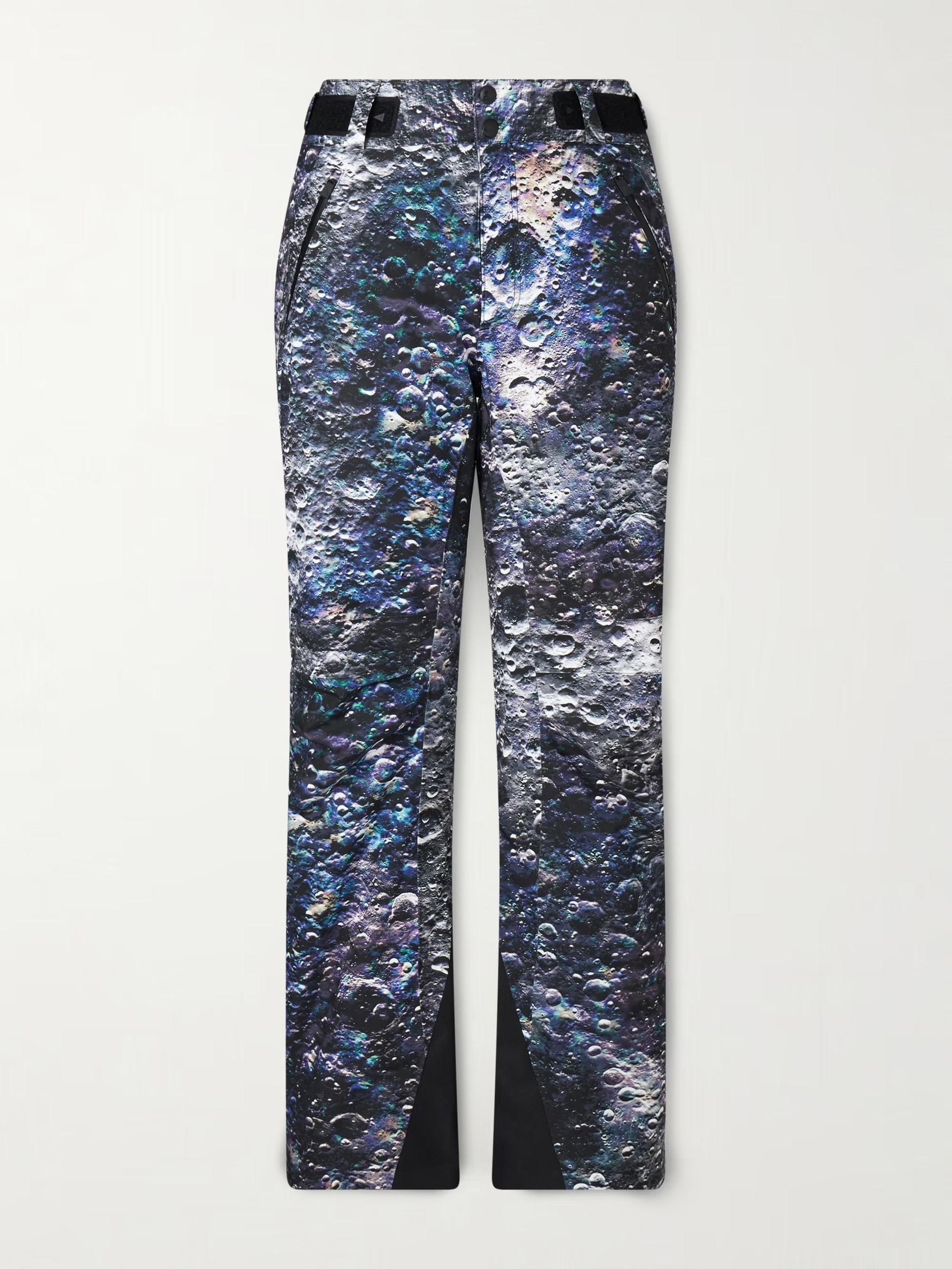Questi principi vengono qui ripensati in funzione del comportamento dei tessuti e della necessità di garantire impermeabilità, isolamento termico, durabilità e libertà di movimento. Aztech Mountain, marchio fondato ad Aspen e specializzato in capi ad alte prestazioni per l’ambiente alpino, ha coinvolto Jackson per lavorare su un terreno che mettesse alla prova la trasferibilità del suo linguaggio: un contesto in cui la superficie non è un supporto neutrale, ma un’interfaccia soggetta a vincoli meccanici, climatici e funzionali. In questo scambio, la dimensione estetica non è disgiunta da quella strutturale: i riferimenti alla geologia e all’iconografia naturalistica presenti nel suo lavoro trovano corrispondenza nei pattern legati alla resa tattile dei materiali, mentre le sue riflessioni sulle trasformazioni tecnologiche diventano parte delle scelte cromatiche e dei volumi delle giacche. Nei capi sviluppati con Jackson, Aztech Mountain impiega i materiali tecnici di fascia alta che caratterizzano le sue linee performative – membrane impermeabili e traspiranti a tre strati, cuciture termosaldate, rinforzi ad alta resistenza e imbottiture leggere – combinandoli con pattern e cromie derivati dalle opere dell’artista. Le superfici non fungono da supporto neutro per una grafica applicata: presentano variazioni di densità, stratificazioni visive e texture che richiamano l’immaginario geologico e tecnologico di Jackson, traducendo in chiave funzionale i suoi procedimenti di montaggio e sovrapposizione. Le zone soggette a maggiore sollecitazione alternano materiali elastici e pannelli rinforzati, mentre le scelte cromatiche si discostano dalle palette sportive convenzionali, adottando tonalità minerali, sfumature iridescenti o contrasti ispirati a superfici industriali. Ne risulta uno skiwear in cui costruzione tecnica e linguaggio artistico operano congiuntamente, producendo capi concepiti per l’uso reale in montagna ma dotati di una complessità visiva che deriva direttamente dal suo lavoro.