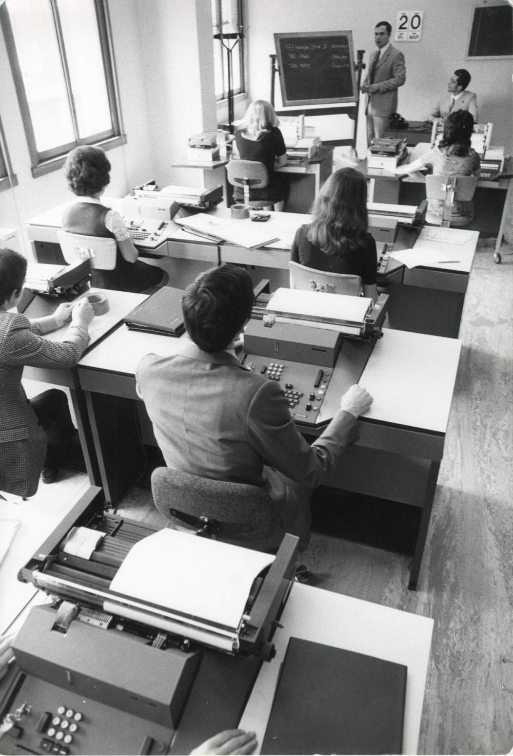 «Scuola per addetti ai terminali di sportello», [1975], Mario Mulas Credits: Unicredit Spa Archivio: : Archivio storico UniCredit, Fondo Credito Italiano, Archivio fotografico, Strutture centrali dell’Istituto, Milano: Centro Elettrocontabile, Optimation, Data Management, Centro Elettrocontabile via Prati Città: Milano
