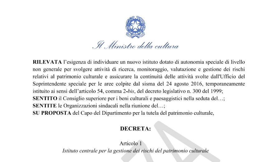 Un estratto dalla bozza del decreto del Ministero della Cultura