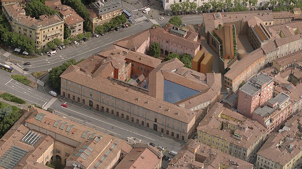Veduta aerea del complesso dell’ex Ospedale di Sant’Aostino a Modena. Foto Serena Campanini e Elisabetta Baracchi