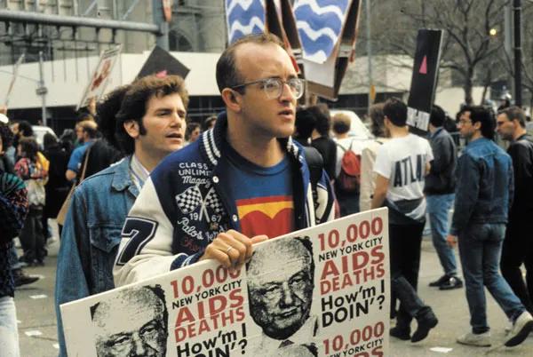 Keith Haring durante la protesta di ACT UP davanti al municipio. Exhibit n. 31. Fondo fotografico e documentario di John Penley, Tamiment Library, New York University. Fotografia di John Penley. Via Flickr.