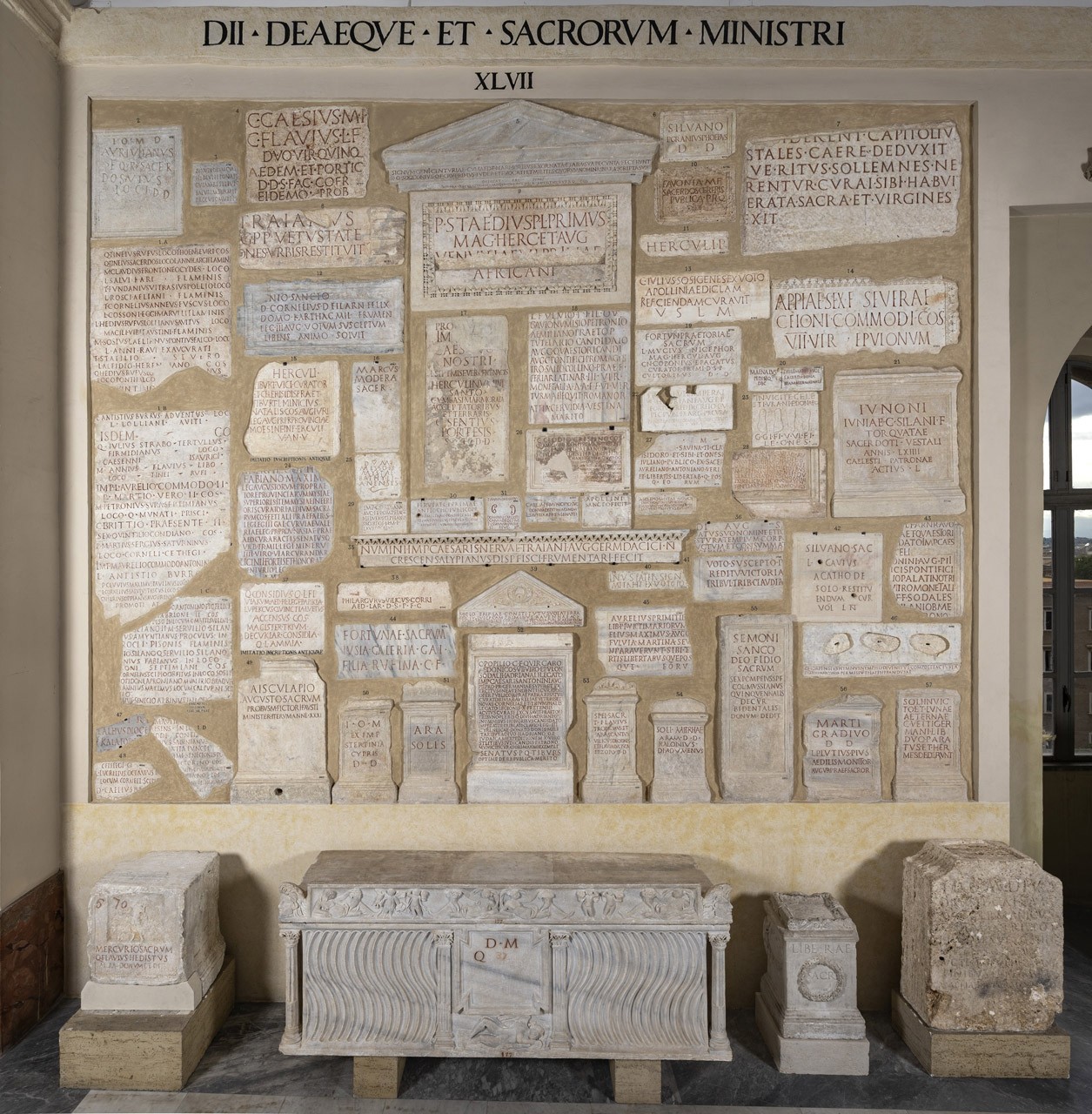 La parete XLVII, dedicata a «Dii deaeque et sacrorum ministri», ovvero agli «Dei, dee e ministri del culto» è stata oggetto di un recente restauro, diretto dal Reparto Raccolte Epigrafiche ed eseguito dal Laboratorio restauro materiali lapidei, con la collaborazione del Gabinetto di ricerche scientifiche dei Musei Vaticani. Come ha commentato Rosanna Barbera, curatrice del Reparto, si è trattato di un intervento, condotto grazie a un cantiere pilota, che ha restituito leggibilità a lapidi annerite da secolari strati di polvere depositatisi sulle loro superfici, e a lapidi spesso ricoperte, lungo i margini, da sovrapposizioni di varia natura. «È stata ridata luce a una grande finestra sul passato, costituita dall’insieme delle 63 opere restaurate». Il restauro ha riguardato le fessurazioni sia delle iscrizioni sia degli intonaci, la rimozione di stuccature non più idonee, la pulitura delle iscrizioni, il risanamento dagli attacchi biologici, e infine la parete stessa, che è stata intonacata e tinteggiata. L’auspicio è che ora l’intervento conservativo possa proseguire sulle restanti pareti della Galleria Lapidaria, a partire dalla XLVIII, contenente iscrizioni cristiane datate.