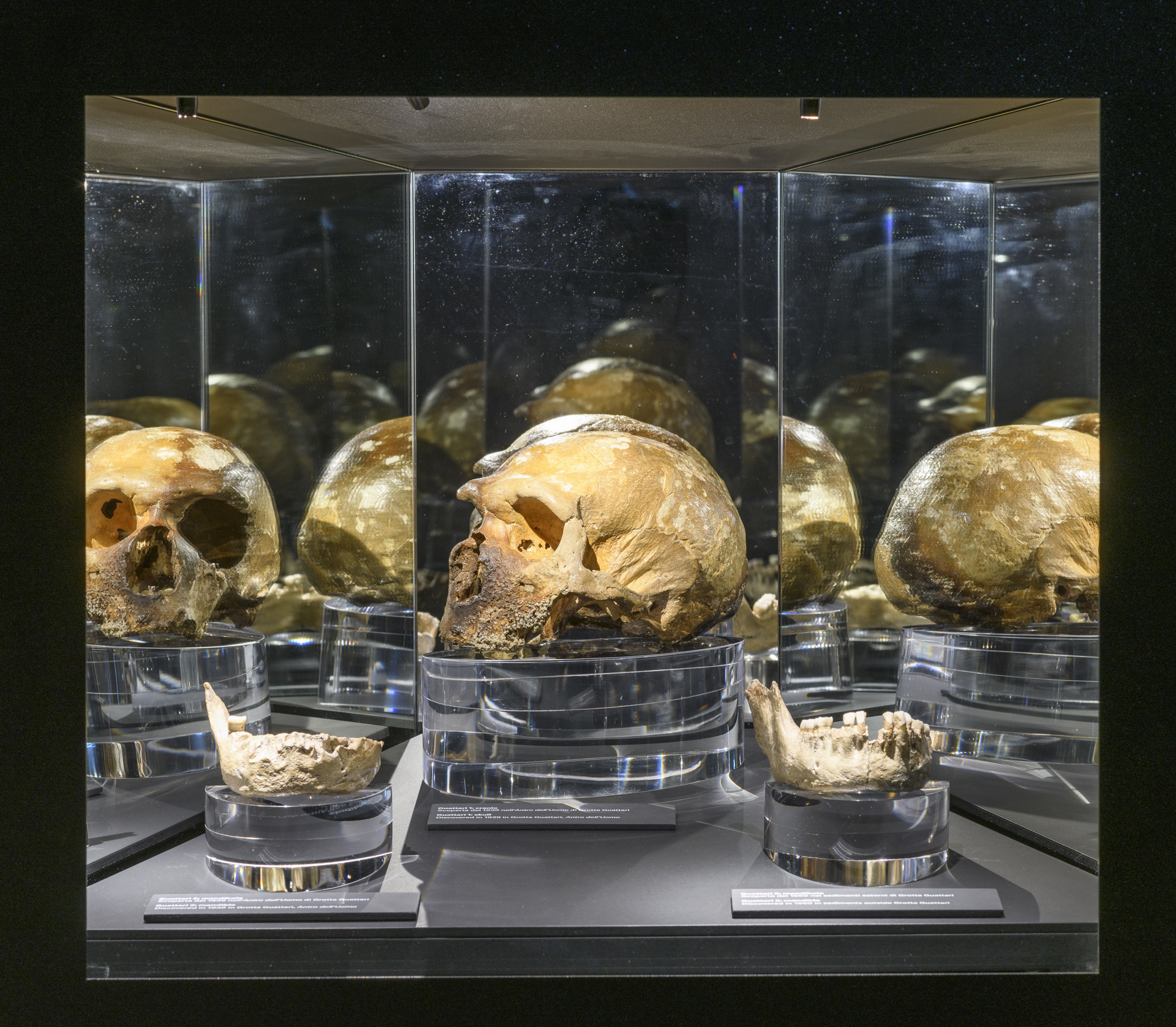 Questo allestimento che, come ha spiegato Luigi La Rocca, capo del Dipartimento per la Tutela del Patrimonio Culturale, «dà ragione del ruolo centrale del cranio di Homo neanderthalensis rinvenuto nel 1939 all’interno della Grotta Guattari, nello studio di questo celebrato antenato», permette ora di ricollocare il prezioso reperto fossile nel suo contesto. Il cranio, conservato dal 1961 nel Museo dedicato al paletnologo Luigi Pigorini, l’attuale Muciv, è stato infatti integrato con altri reperti fossili umani rinvenuti durante le ricerche archeologiche, ancora in corso, condotte a partire dal 2019 dalla Soprintendenza Archeologia, Belle Arti e Paesaggio per le Province di Frosinone e Latina.