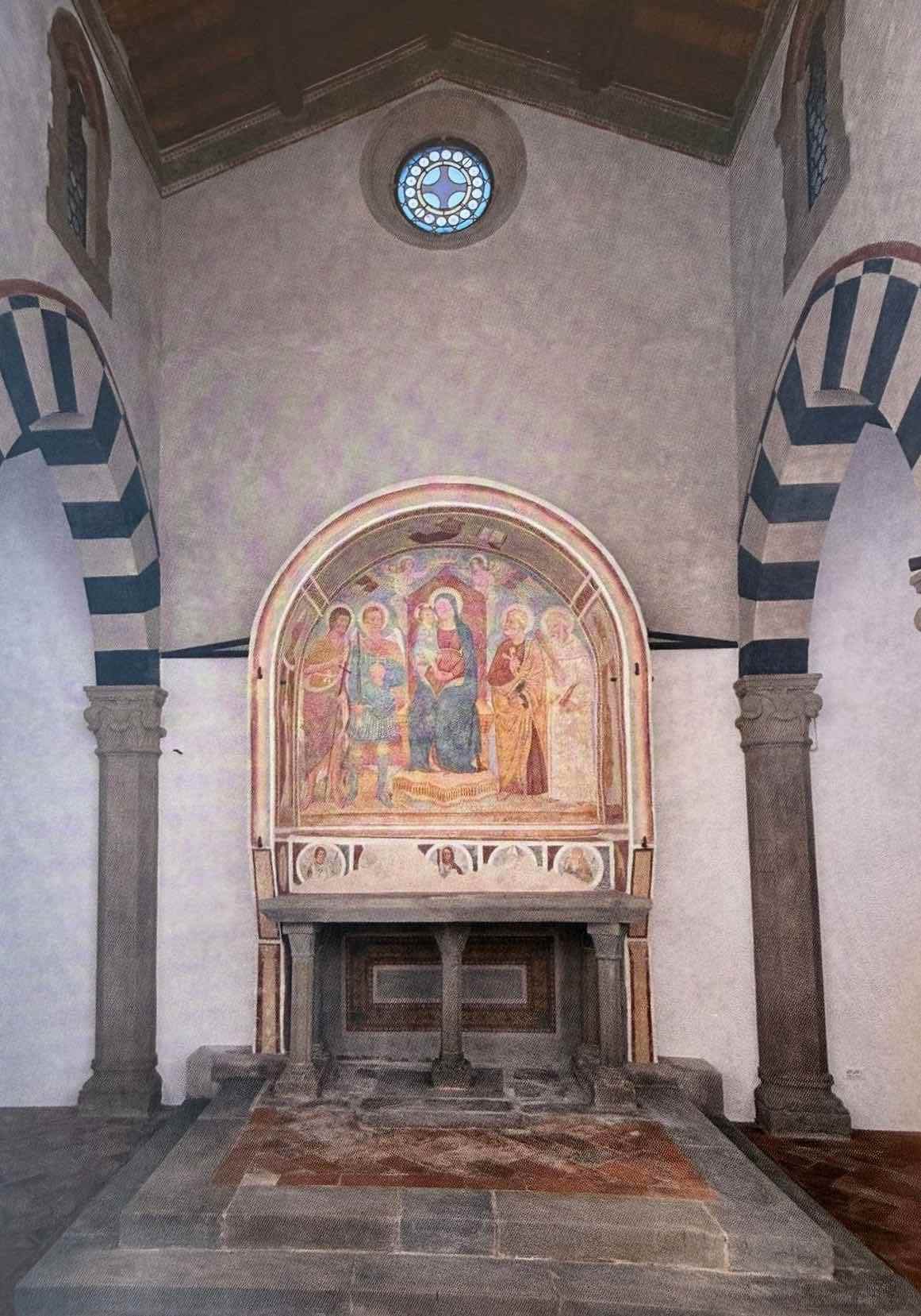 L’opera di restauro, articolata e durata quattro anni, ha riguardato la copertura, le vetrate, il portone, le panche, l’intonaco e il gioiello artistico che custodisce da secoli, uno dei più rilevanti del Quattrocento toscano: l’affresco della «Madonna con Bambino e santi», firmato dal maestro fiorentino Paolo di Stefano Badaloni detto Paolo Schiavo (1397-1478), allievo e collega di Masolino da Panicale. L’intervento è promosso e finanziato dal Comune di Greve in Chianti in collaborazione con Regione Toscana, il Sistema Museale Chianti Valdarno con il supporto della Fondazione Cr Firenze che ha contribuito ai lavori di restauro della copertura e degli interni, mentre si deve alla generosa donazione di un cittadino, Franco Maviglia, il restauro dell’affresco del pittore fiorentino.
