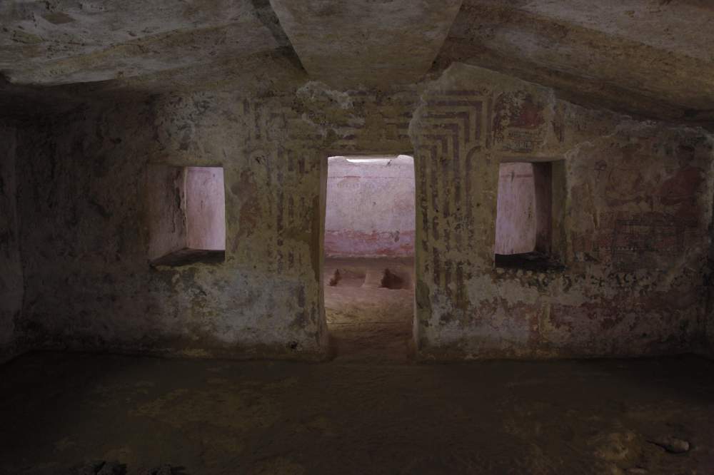 Tarquinia, Necropoli dei Monterozzi, Tomba degli Scudi, veduta interna. Foto: Giovanni Formosa
