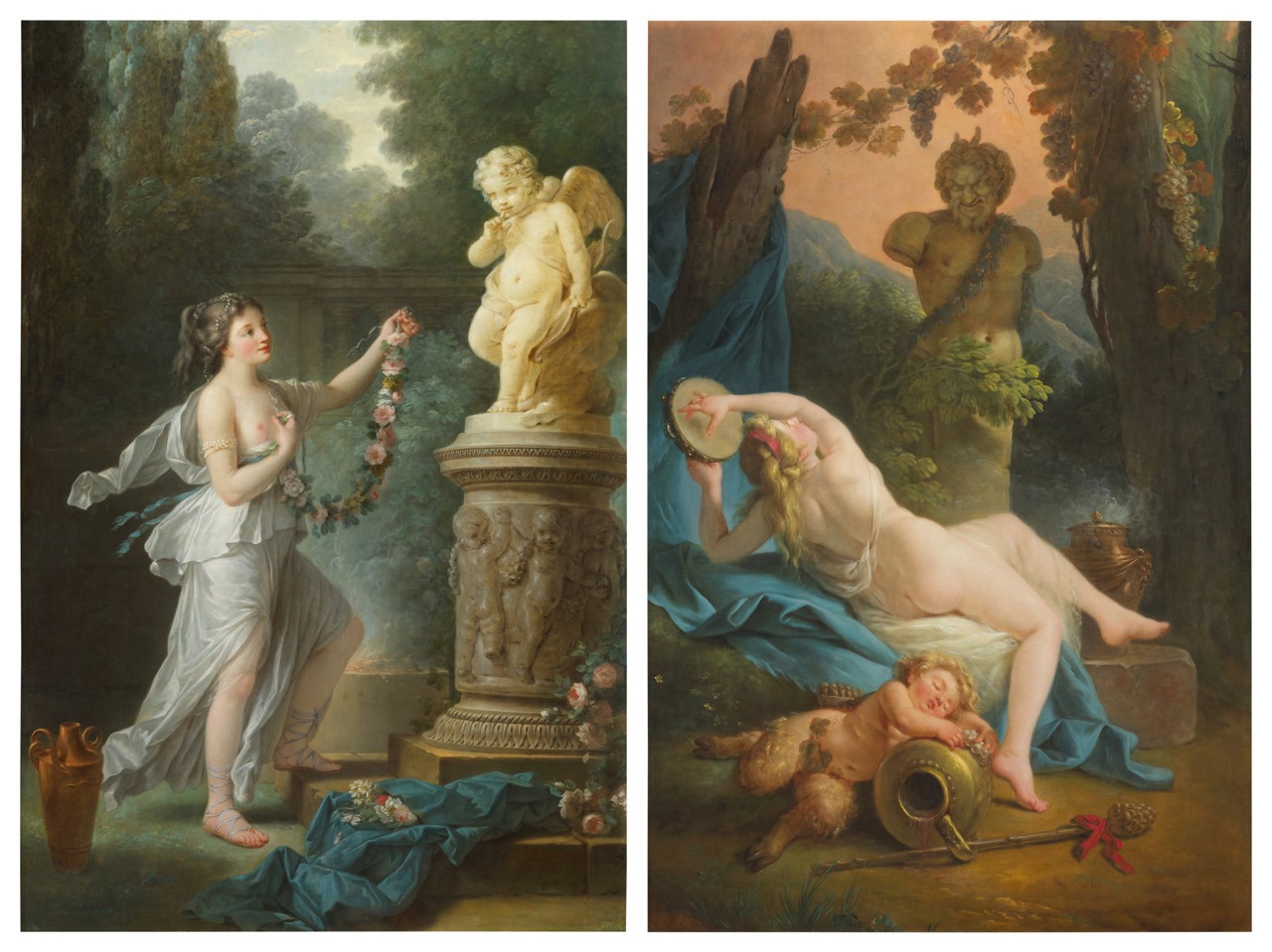 Da sinistra, «Offerta all’amore» e «Baccante che suona il tamburello davanti alla statua di Pan» di Antoine-François Callet. © Sotheby’s