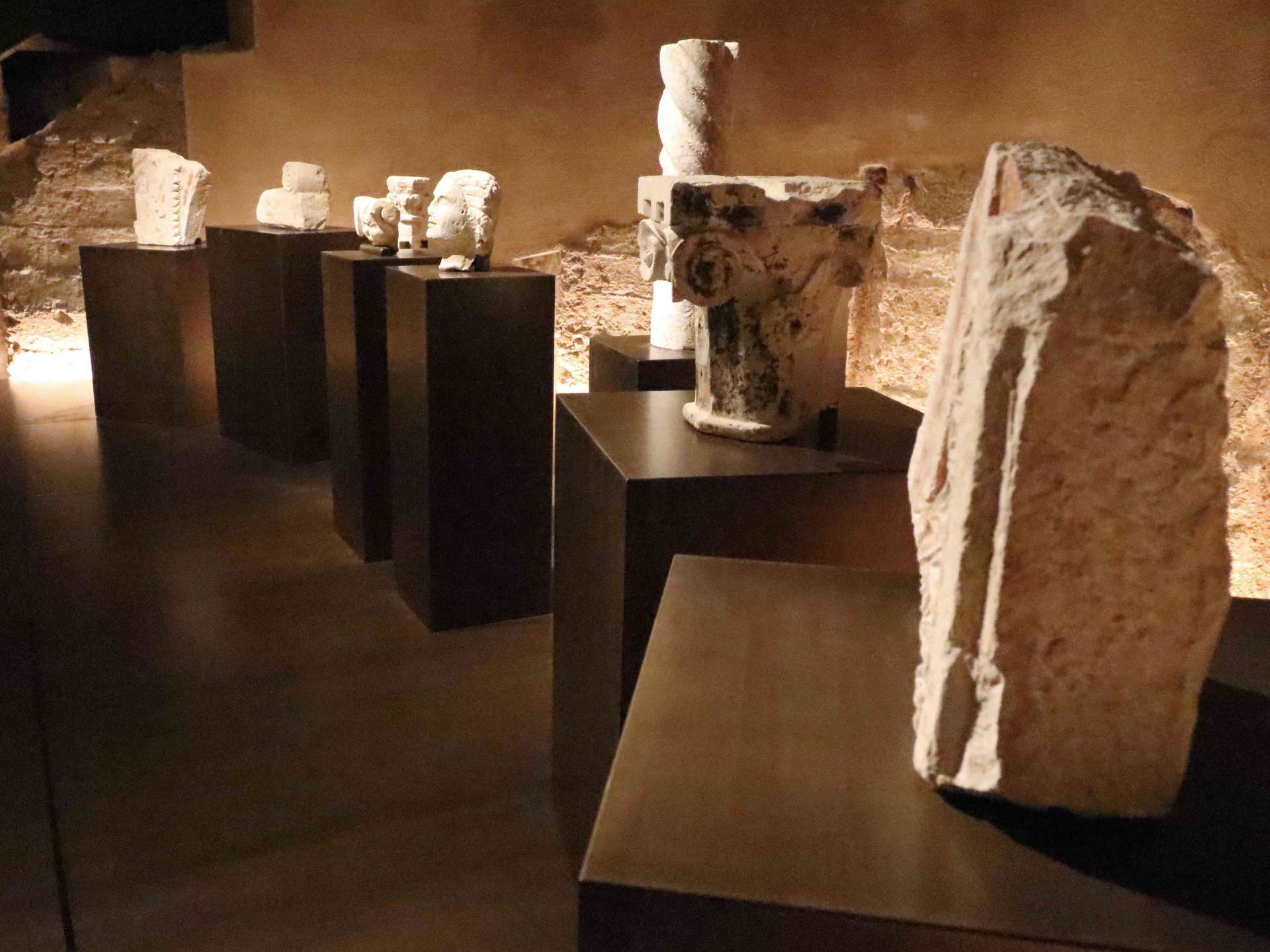 I reperti nella Cripta della Basilica di San Benedetto a Norcia. Foto Stefano Miliani