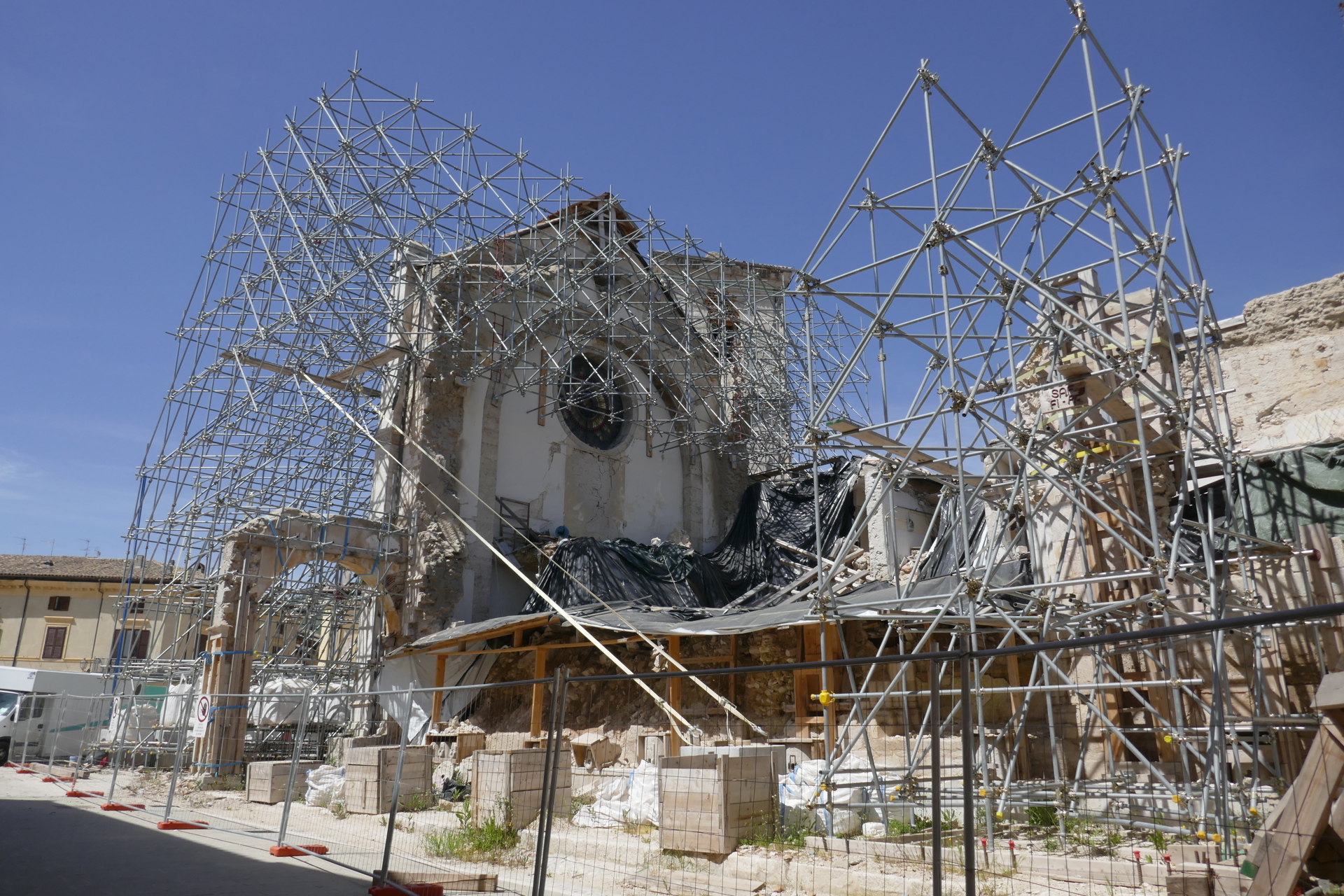 All’indomani dei crolli circolarono critiche sia per la cronica assenza della cultura della prevenzione sismica, sia per presunti mancati puntellamenti dopo Amatrice. Le Soprintendenze, con le forze a disposizione, erano intervenute come potevano, con funzionari e funzionarie e soprintendenti (allora in Umbria era Marica Mercalli) in prima fila sul posto insieme a vigili del fuoco, Carabinieri, protezione civile. Lo sciame sismico martellò e fece paura fino al gennaio 2017. I ponteggi mettevano via via in sicurezza quanto reggeva. Procedure burocratiche pensate per prevenire il malaffare negli appalti e altre, riprese dal sisma emiliano del 2012, si rivelarono farraginose di fronte a quella emergenza. Ovunque la rimozione delle macerie fu lentissima. A dicembre 2017 dentro San Benedetto c’erano tre metri di detriti: vero è che toglierli richiese gran cautela e quasi tre anni perché a modo loro puntellavano le murature e qualche intoppo con un’impresa rallentò il lavoro.