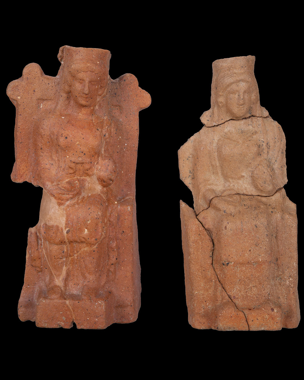Statuette di Hera seduta in trono, cosiddetta «Hera pestana», con coppa per il sacrificio nella mano destra e melagrana o cesti di frutti nella sinistra, IV secolo a.C. Cortesia dei Parchi Archeologici di Paestum&Velia