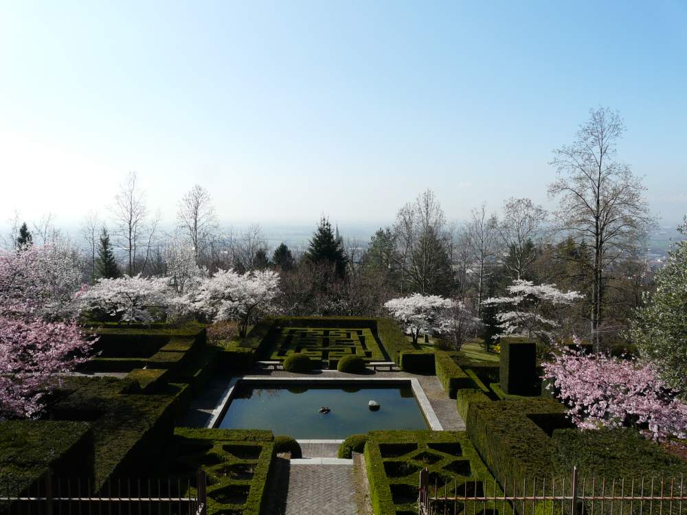 Una veduta del giardino di Villa Silvio Pellico a Moncalieri disegnato da Russell Page.