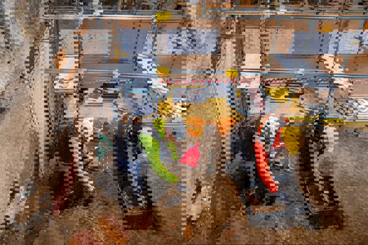 Archeologi alll’opera nel cantiere di scavo in corso ad Oplontis-Torre Annunziata. Foto: MiC Parco Archeologico di Pompei