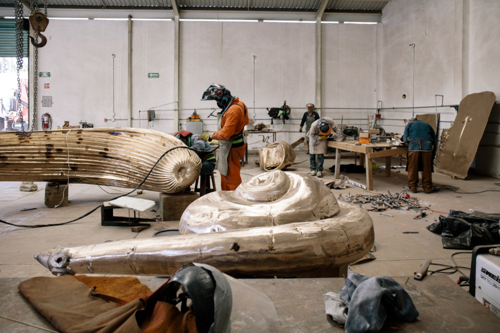 Alma Allen nel suo studio di scultura. Credits Diego Flores. Courtesy dell'artista e di Kasmin gallery.