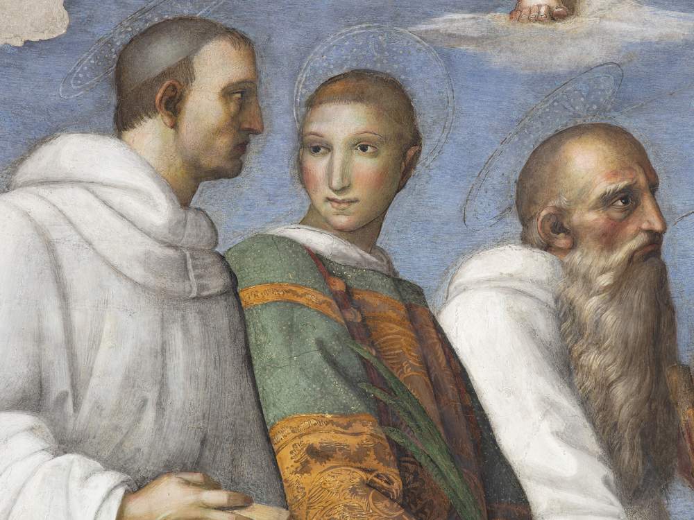 Nel registro superiore Raffaello lavorò per i camaldolesi in momenti diversi dal 1505 fino più o meno al 1508, ma lasciò a metà quella che rimane la sua unica opera a Perugia; dopo la morte del Sanzio nel 1520 i committenti chiamarono il suo maestro, il Perugino, che dipinse il registro sottostante nel 1521. «L’ultimo restauro fu nel 1976 di Carlo Giantomassi, che ha fatto un sopralluogo e con il quale ci siamo confrontati, racconta Elena Mercanti.