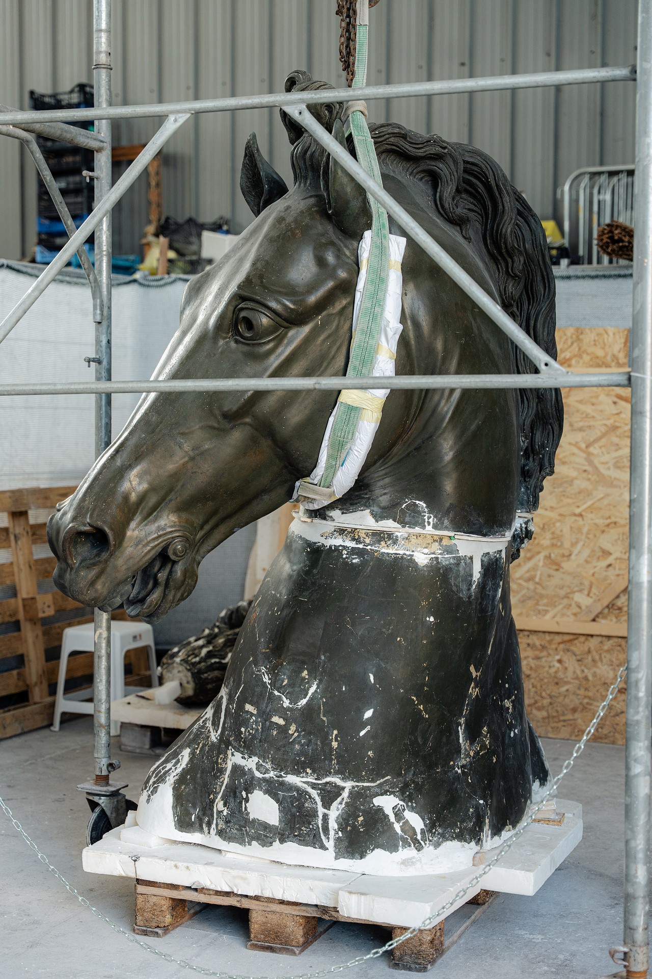 Un momento del restauro del Cavallo colossale di Antonio Canova. © Joan Porcel Studio-Ilaria Zago