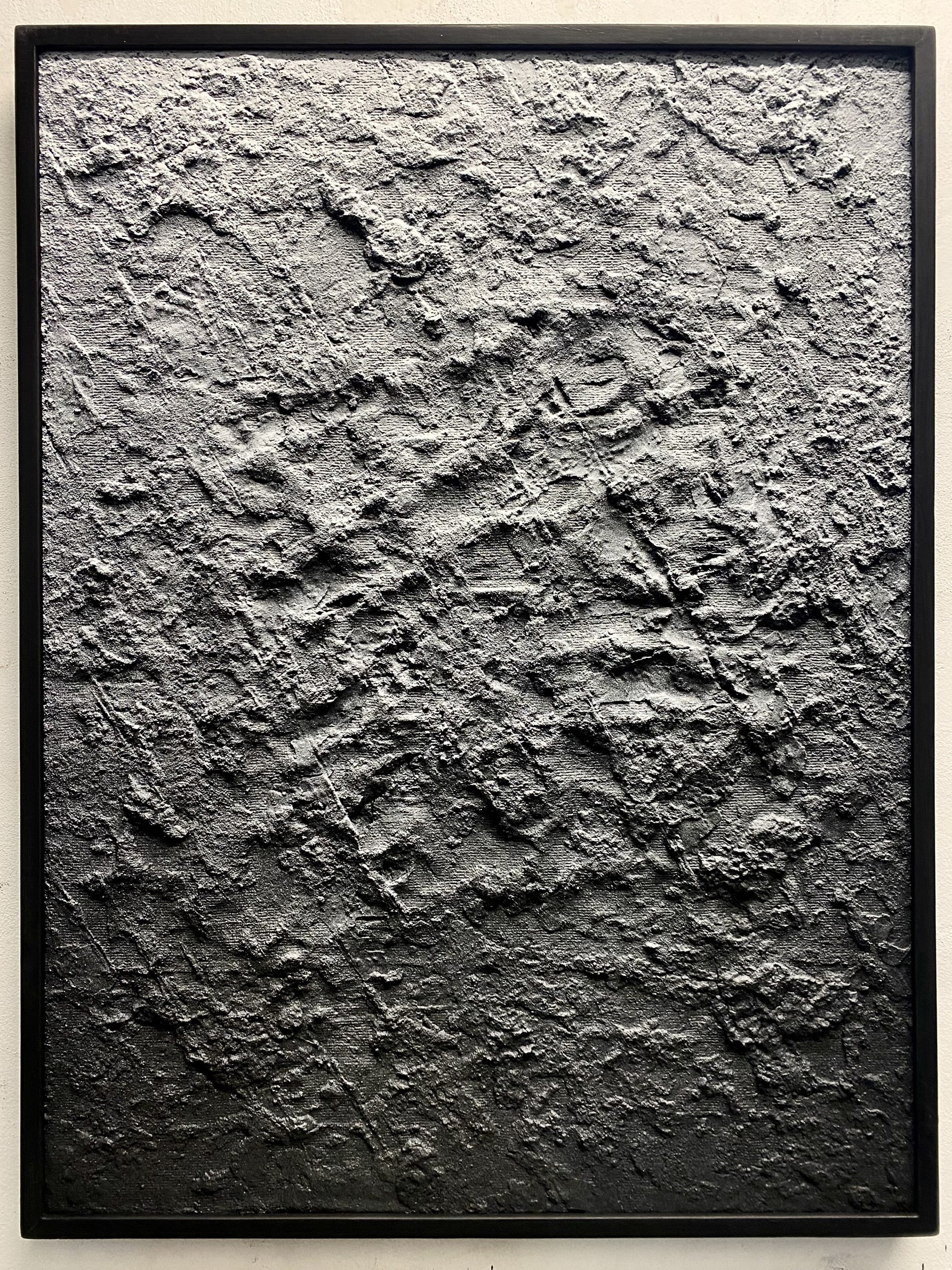 Infine, si sottolinea ancora la presenza di Jacopo Mattia Alegiani, autore di «Pro > 8» (stima: 6mila–7.200 euro) e «Light on Black» (stima: 3mila–3.600 euro), composizioni materiche in cui la luce si riflette per evidenziare una rugosità e una morfologia della superficie che diventano elementi strutturali dell’opera. Il gesto pittorico, controllato ma fisicamente presente, costruisce campi visivi densi, nei quali l’interazione tra chiaroscuro e materia genera una percezione quasi tattile. La superficie non è mai neutra, ma si fa luogo di tensione tra profondità e affioramento, tra assorbimento e rifrazione della luce, suggerendo una dimensione spaziale che va oltre la bidimensionalità del supporto.