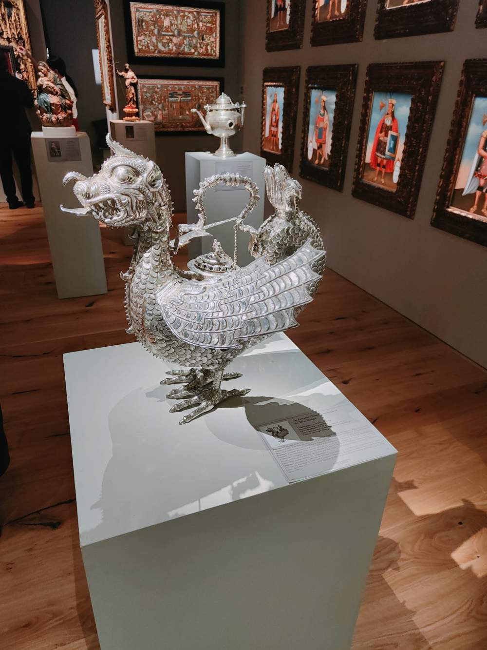 Come sempre curata la cornice della kermesse, quest’anno con raffinatissime corbeille di fiori che ondeggiavano dal soffitto come delicati lampadari. Ma l’intera fiera invitava a un’esplorazione con i cinque sensi: alla vista si affiancava una percezione quasi tattile, di gusto e olfattiva, evocata dal virtuosismo di alcune tele (su tutte le nature morte di Willem Claesz Heda e le sontuose ceste di frutta di Van Hulsdonck da Richard Green). Per passare agli oggetti da Wunderkammer, come la lumaca d’oro massiccio finemente smaltata e utilizzata come versatoio, del 1620 circa, presentata dall’antiquario Kugel, oppure lo scintillante bollitore a forma di animale fantastico, oggetto della dinastia Ming, in argento cinese finemente lavorato e tintinnante, appartenuto allo sceicco Hamad bin Abdullah Al Thani (da Jaime Eguiguren), per concludere con i luccichii e fruscii preziosi della sezione dei gioielli d’epoca, (su tutti i capolavori di maestria di René Lalique e Carl Fabergé da Wartski). Senza dimenticare i brindisi, questa volta reali e a base di champagne, che si sono ripetuti più volte fra i corridoi. Un ottimo indizio di affari conclusi.