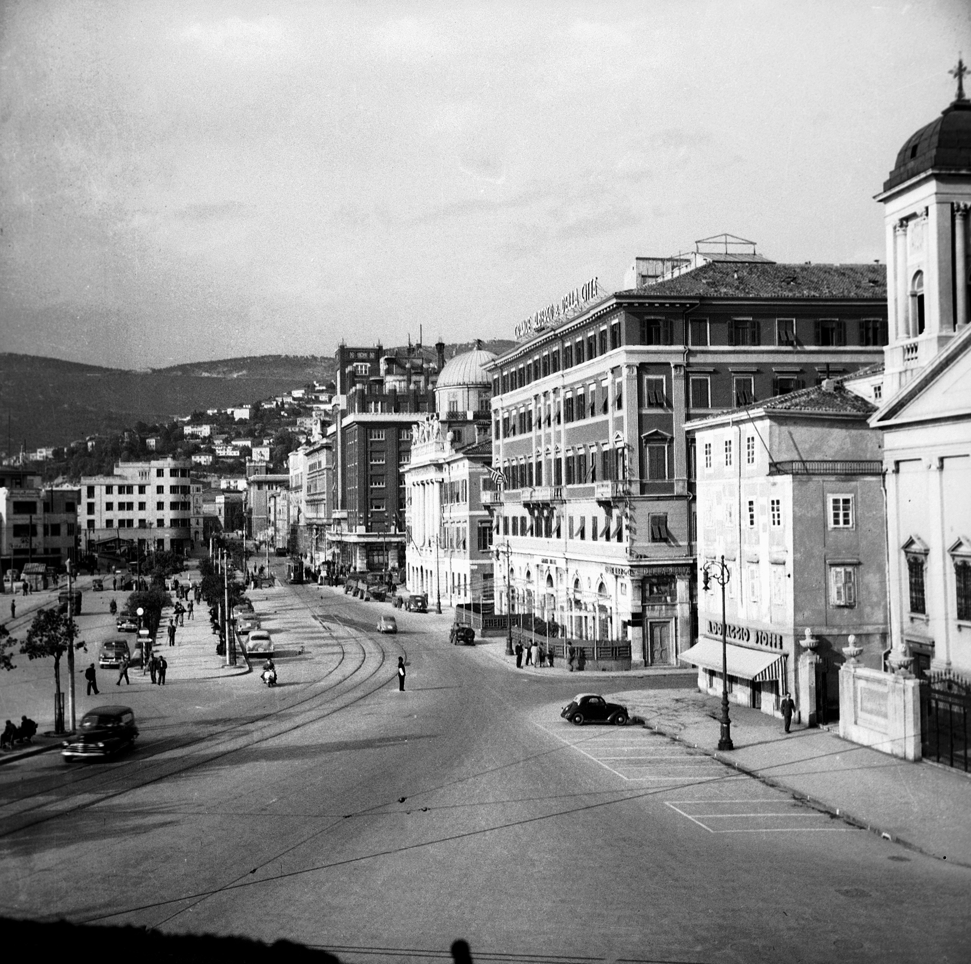 Marion Wulz, «Corso Cavour all’altezza della Chiesa Greco Ortodossa a Trieste», 1950. Per gentile concessione di Fondazione Alinari per la Fotografia