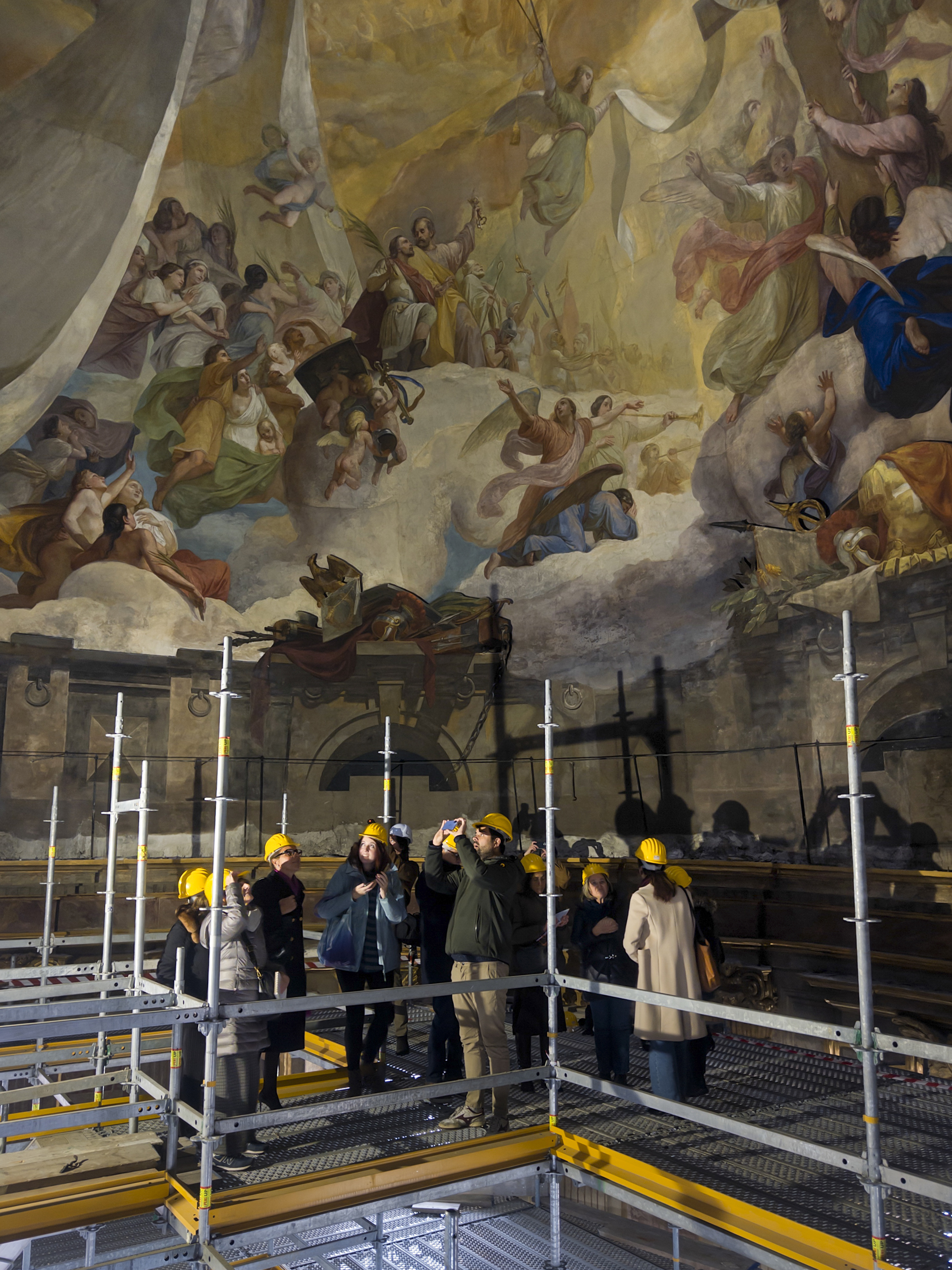 I ponteggi per il restauro degli affreschi della cupola della Basilica Mauriziana. Photo: Silvano Pupella