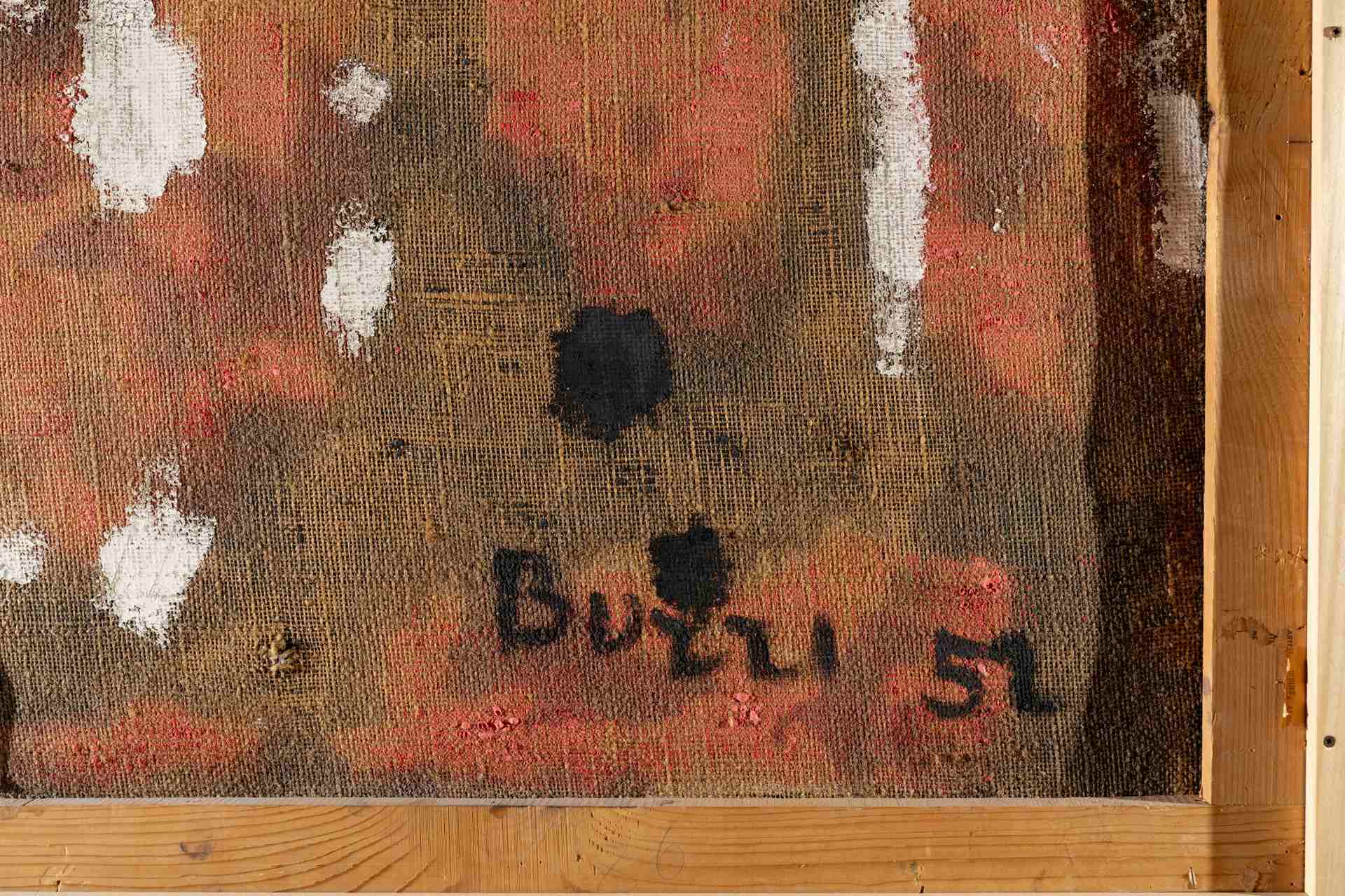 Dettaglio della firma di Alberto Burri sull’opera. Courtesy of Gregory's Casa d’Aste