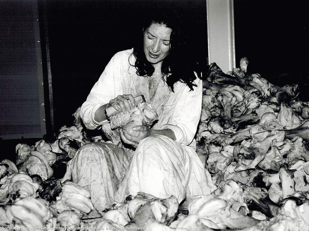 E che dire dei cinque pitoni che in «Dragon Heart» (1992), strisciandole intorno al capo, la tramutano in un’imperturbabile e pietrificata Gorgone? La danza macabra con lo scheletro umano ossessivamente strigliato nel tentativo di un’impossibile pulizia (retaggio materno, s’è visto), l’iterata scarnificazione di una montagna di ossa bovine nei tre giorni di inaugurazione della Biennale di Venezia del 1997, quando ottenne il Leone d’oro, e prima ancora il tableau vivant molto alla Bill Viola in cui inscena, nel 1983, la Pietà michelangiolesca tenendo sulle ginocchia l’esanime Ulay, sono soltanto alcuni esempi di quello che, a ben vedere, è uno certo talento pittorico. Di sicuro è un clamoroso tradimento: nulla più della fissità dell’icona è antitetico rispetto all’azione.