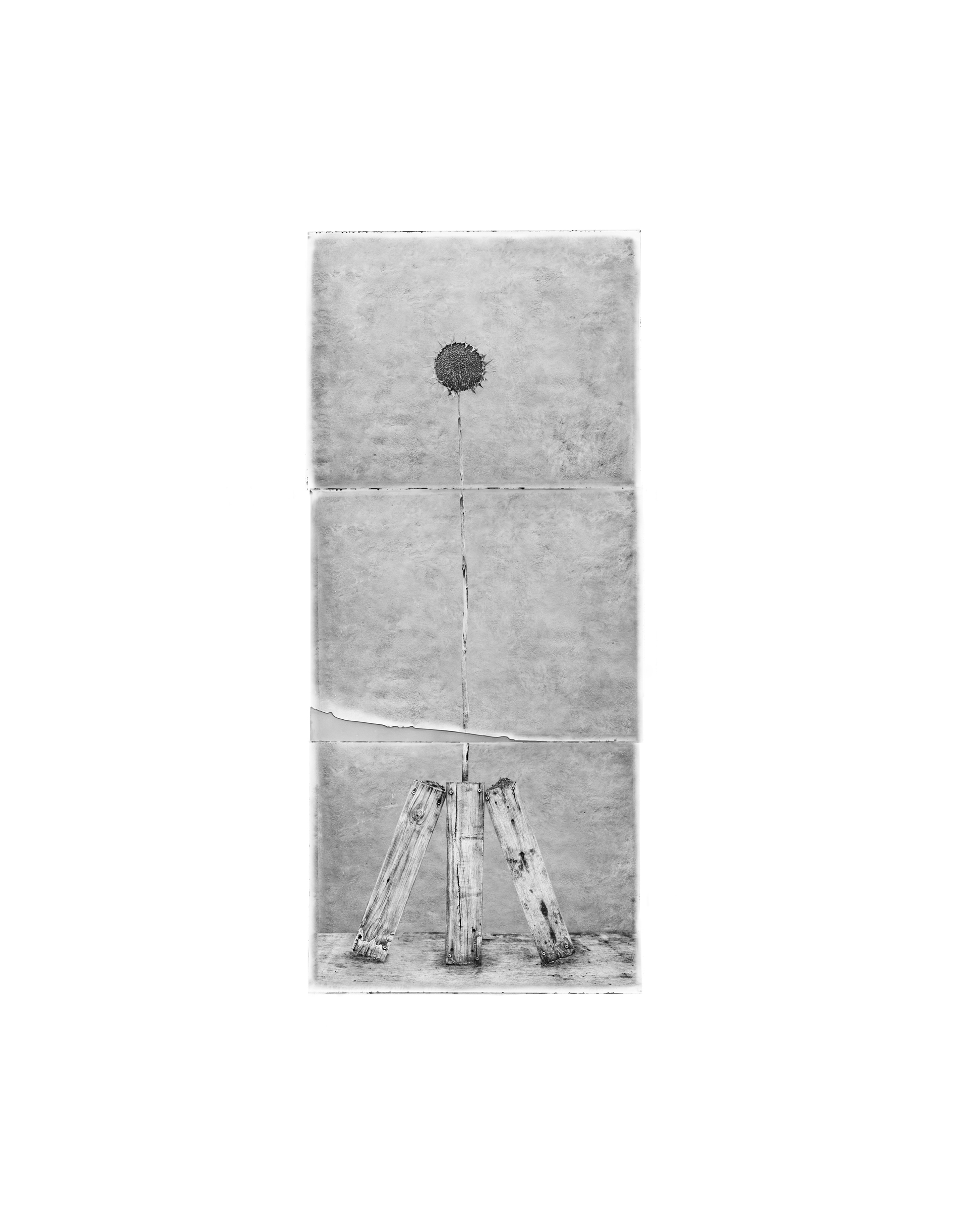 Se questa doppia personale occupa il piano terra della Fondazione ICA, al primo piano, nella project room, sono esposte per la prima volta in assoluto (con la cura di Alberto Salvadori) tre opere della serie «52 Ludlow» realizzate a New York da Giovanni Stefano Ghidini (Urago d’Oglio, 1957), parte di un ampio progetto sviluppato dall’artista nell’arco di venticinque anni. Titolo della serie è l’indirizzo del palazzo del Lower East Side di New York sul cui tetto l’artista diede il via, nel 1997, a questo progetto alla cui realizzazione concorrono natura, scultura e fotografia. Su quel tetto, infatti, Ghidini coltivava dei grandi girasoli dalle valenze antropomorfe, mentre il loro ciclo vitale, dalla semina all’appassimento del fiore, alla dispersione dei nuovi semi, diventa metafora della vicenda comune a ogni essere vivente.