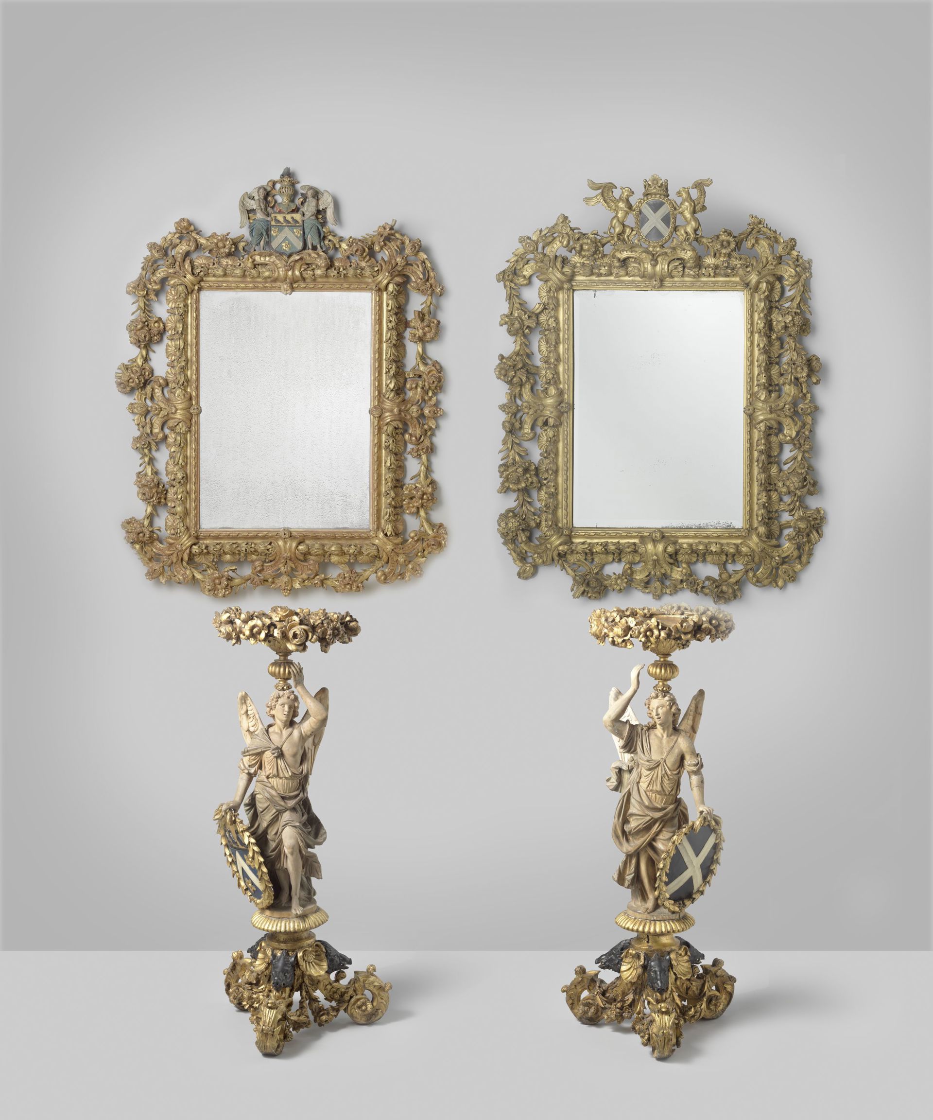 Set di due specchi e due gueridon con gli stemmi di Johan Boudaen Courten e Anna Maria Hoeufft, Paesi Bassi settentrionali, 1680-1700 ca. Middelburg, Zeeuws Museum e Amsterdam, Rijksmuseum