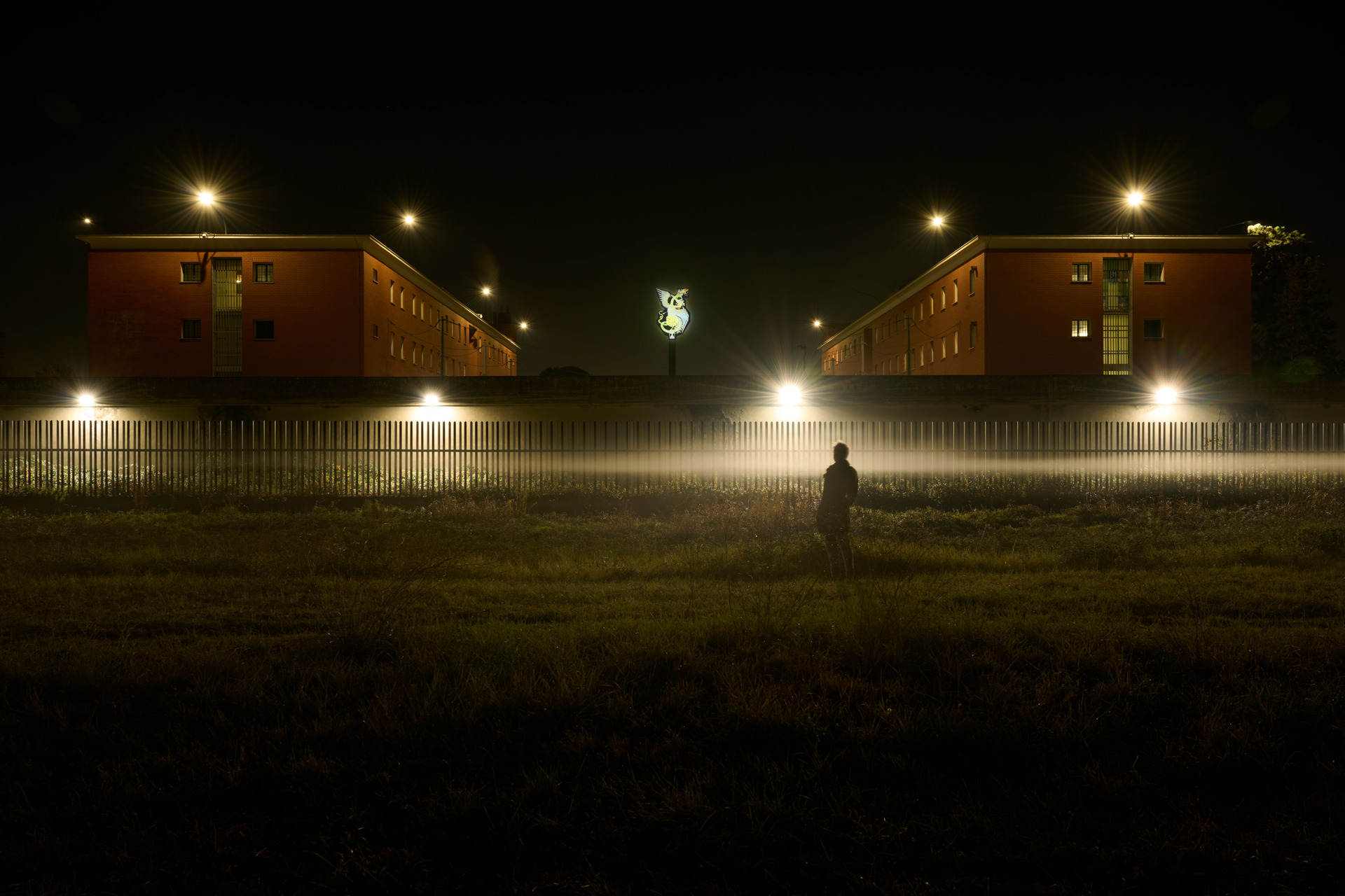 Da questa notte le due creature «rock», che svettano su aste di oltre otto metri all’interno del perimetro carcerario, sono visibili dalle stanze di pernottamento delle detenute, dagli uffici del personale, dagli edifici di Casale di San Basilio e da chiunque passeggi all’esterno del carcere. Assomigliano a un ponte di luce acceso da battiti, gambe che pedalano, a unire la vita che anima il carcere con quella che scorre fuori. Perché le due fenici che sbucano dai muri della Casa Circondariale Femminile di Rebibbia hanno bisogno della forza delle donne detenute per brillare. L’idea di installare cyclette negli spazi comuni del carcere, collegate ad accumulatori di energia, è nata dall’esigenza delle detenute di avere a disposizione attrezzi con cui allenarsi. Grazie al lavoro fisico di quante decidono di pedalare viene accumulata energia che, al tramonto, accende le sculture, collegandone la visibilità alla volontà delle detenute stesse.