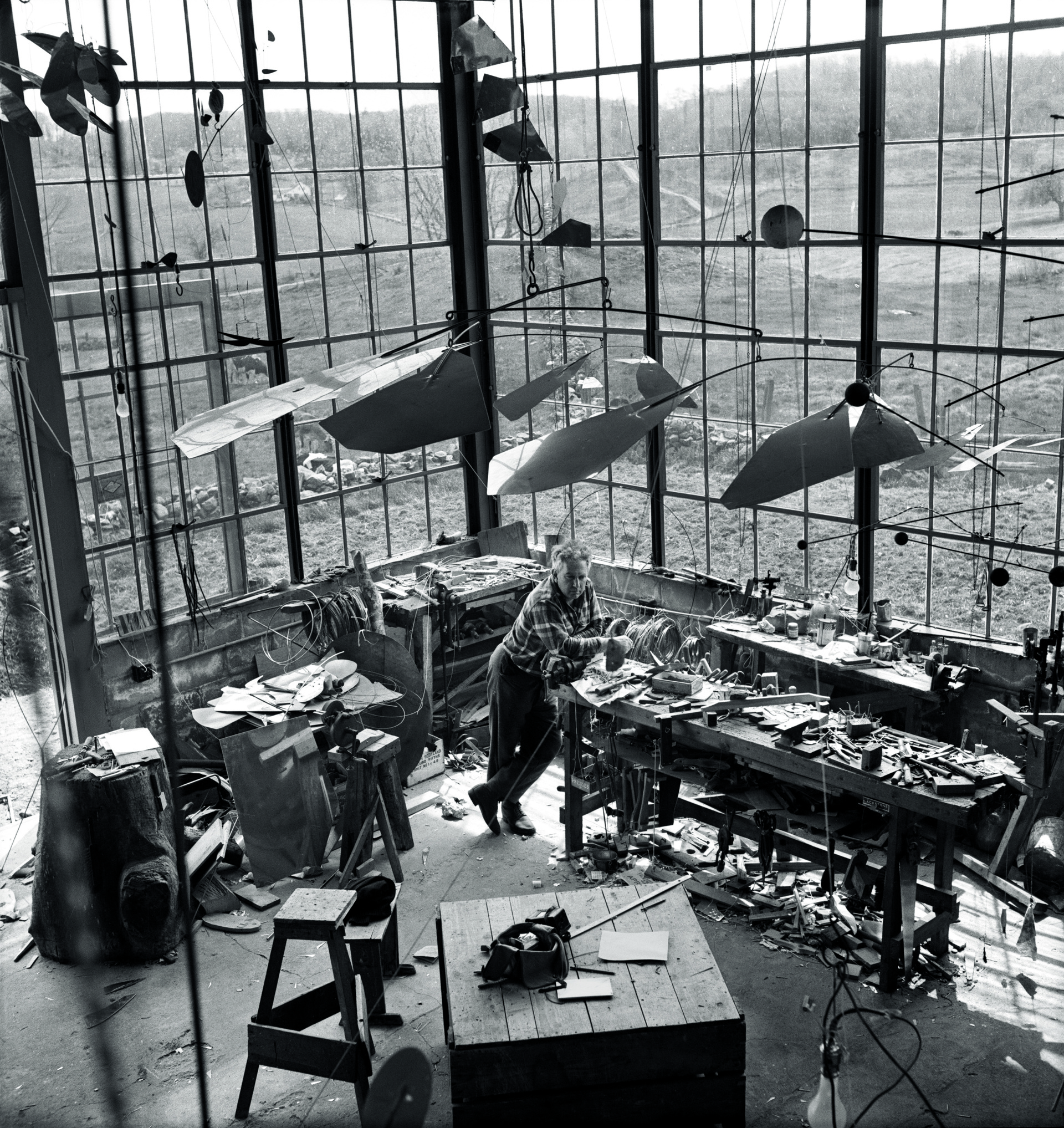 Calder nel suo atelier di Roxbury, 1941. Foto: Herbert Matter. Calder Foundation, New York