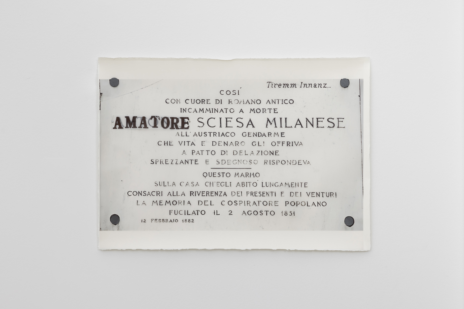 Dieci traumi nella storia di Milano degli ultimi 170 anni, dalla metà dell’Ottocento all’inizio del nostro secolo. E dieci artisti (Camilla Alberti, Francesco Arena, Stefano Arienti, Ruth Beraha, Valentina Furian, Marcello Maloberti con Fortunato Zinni, superstite della strage di Piazza Fontana, Liliana Moro, Diego Perrone, Paola Pivi e Luca Vitone) chiamati da Spazio Taverna, lo studio fondato da Ludovico Pratesi e Marco Bassan, a riflettere, in altrettanti lavori su carta, su questi «squarci» nella storia della città che hanno aperto ferite collettive nella comunità.