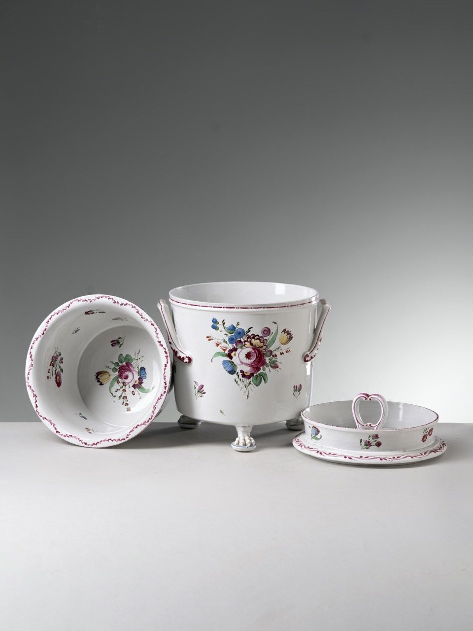 Manifattura Ginori, Rinfrescabicchieri costolato con decoro «galli rossi» e rivoli d’acqua in rilievo, seconda metà del XVIII secolo, Sesto Fiorentino, Museo Ginori