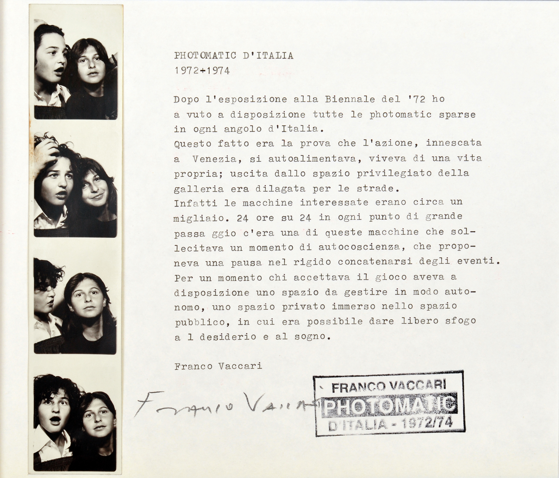 Franco Vaccari, «Photomatic d’Italia», 1972-74 Courtesy l’artista e P420, Bologna