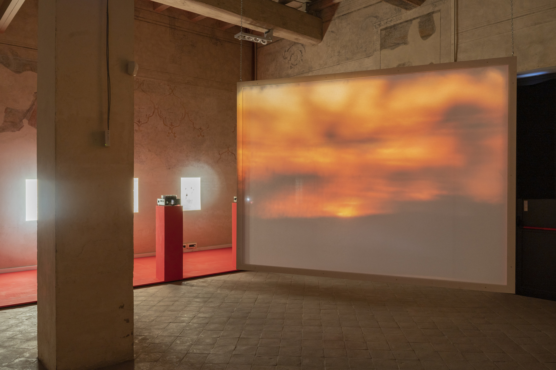 Una veduta della mostra «Marinella Pirelli. Fino ai margini del bosco: Disegni, fotografie, film» nel Refettorio delle Monache dell’Ex Convento di San Mattia a Bologna
