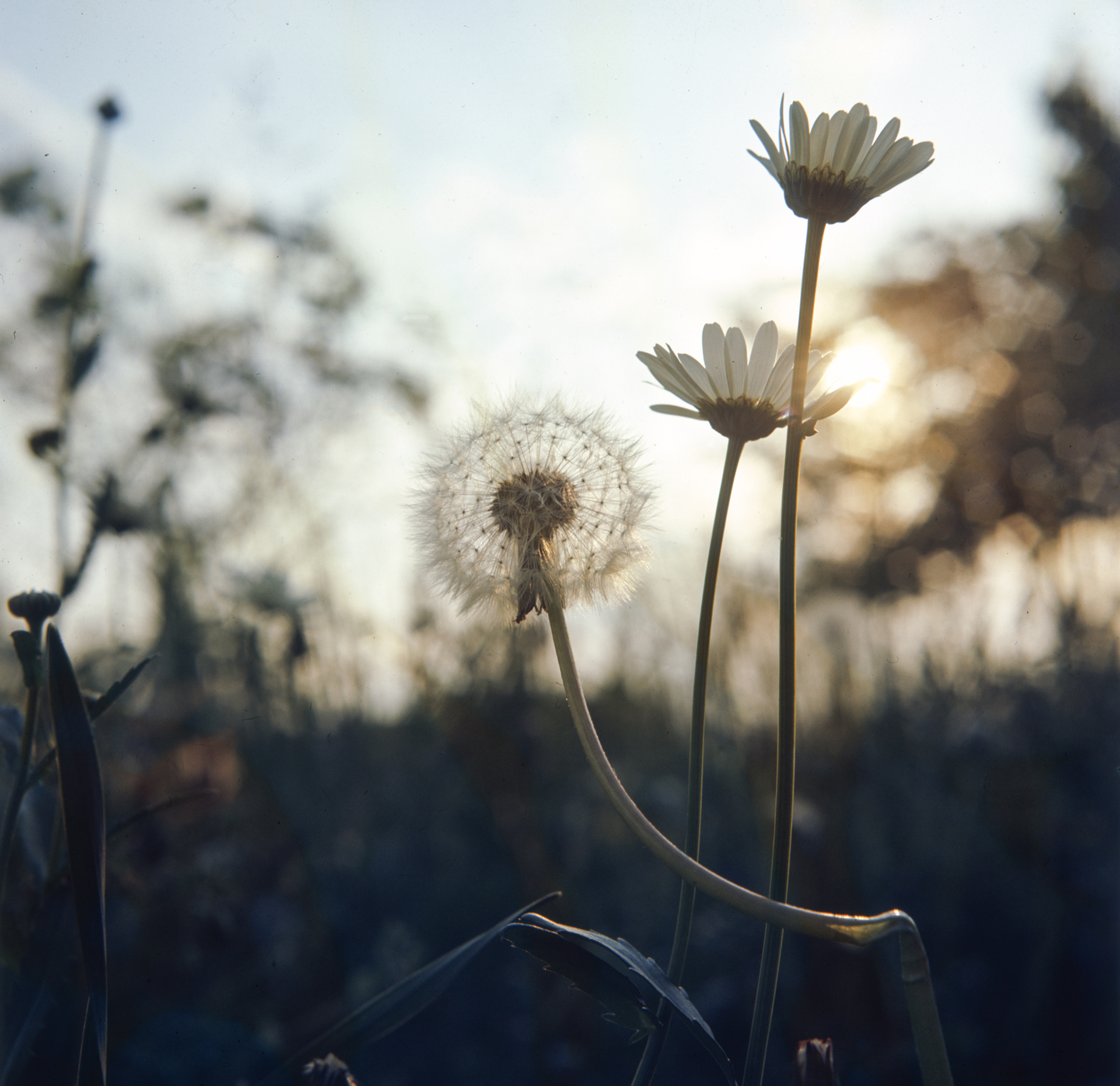D’altronde, basta guardare l’erbario, il film e le diapositive in mostra a Bologna, poi risfogliare il catalogo Skira del 2019 (che documenta la mostra «Luce e movimento» dedicata a Marinella Pirelli a dieci anni dalla scomparsa dal Museo del Novecento di Milano a cura di Jolanda Ratti e Lucia Aspesi, marzo-agosto 2019) per notare stringenti analogie formali e poetiche tra la pittura, le fotografie, i disegni e i brevi film, ma anche con le serie delle «Meteore» e dei «Pulsar» (che la mettono in relazione con i movimenti dell’arte cinetica e programmatica). Indica Simi che «ci sono alcune diapositive che mostrano dei segni visibili, sui petali, che sono chiaramente gli stessi che troviamo nel film “Bruciare”, è evidente per me che lei stesse portando avanti un lavoro in parallelo utilizzando fotografia e film. Allo stesso modo le macrofotografie di foglie autunnali ricordano moltissimo le inquadrature di “Sole sole sole” a cui le abbiamo accostate. La mia proposta è che le diapositive 6x6, di cui oggi vediamo in mostra una piccola parte (i figli ricordano che scattava con una vecchissima macchina fotografica a soffietto, di suo padre, Ndr), siano state fatte tra la metà degli anni Sessanta e i primi anni Settanta esattamente nel periodo dei film che conosciamo. Le diapositive che ritraggono il tarassaco con i suoi fiori tondi e gialli che diventano i soffioni, la forma circolare, evanescente ma esplosiva, in cui il movimento si percepisce forte e chiaro… c’è un parallelismo notevole con i lavori del ciclo “Meteore”, che sono degli stessi anni e iniziano proprio con un fiore».