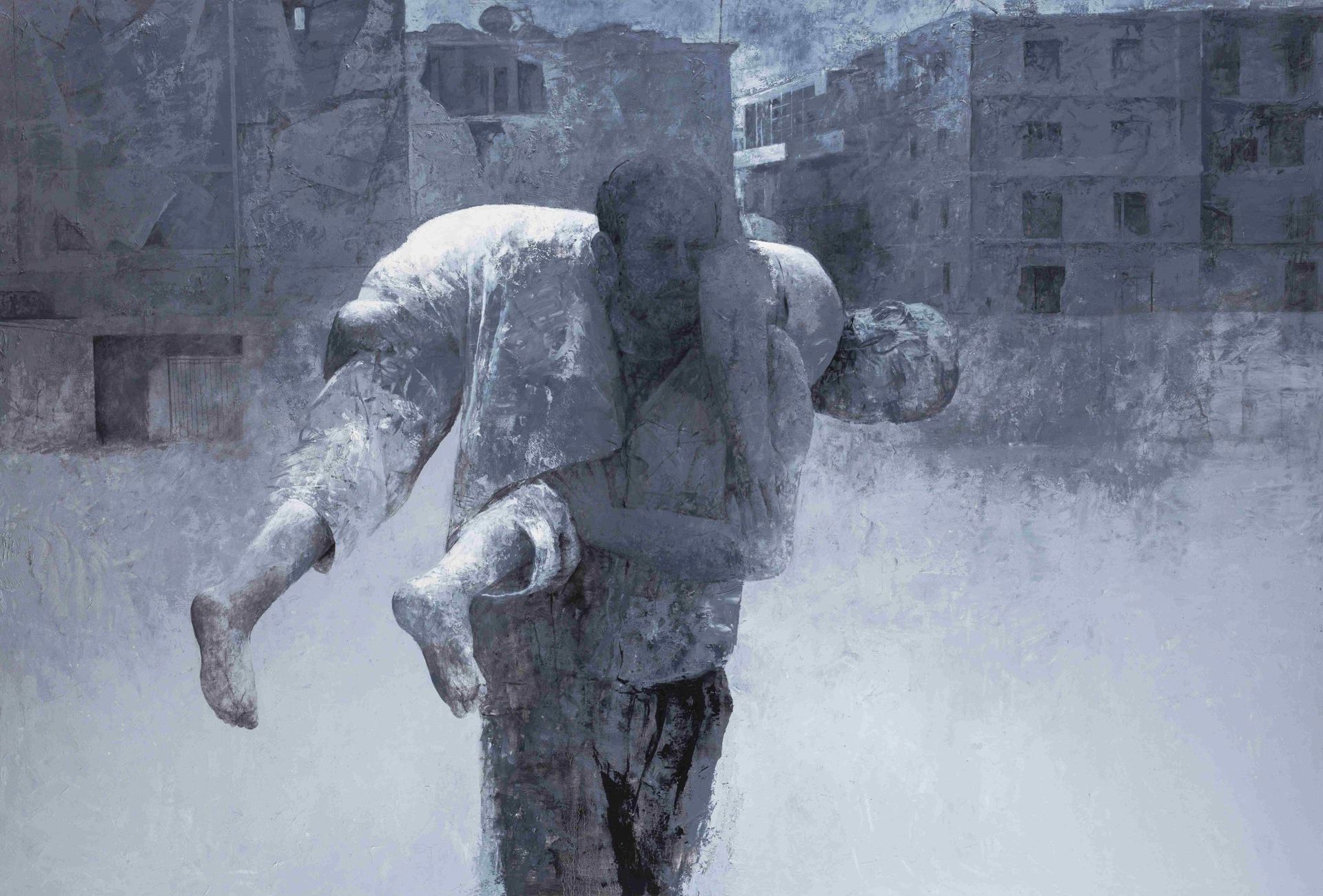 Nelle sale al piano superiore si cambia totalmente atmosfera e sembra di visitare una mostra diversa, a testimonianza delle tante anime dell’artista. Quanto gli acquerelli sono caldi e colorati, tanto i dipinti a olio della serie «Siete» sono dominati dai grigi e dagli azzurri, a illustrare i momenti del quotidiano, con un approccio molto meno sognante ma altrettanto poetico. Spiega l’autore: «Questi sette trittici prendono il via con lo sbarco degli albanesi in Italia, alla fine degli anni Novanta, qualcosa di mai visto. Iniziai una riflessione sulla condizione umana». Ecco, quindi i dipinti sui temi dell’esistenza quotidiana, che riguardano i migranti ma anche ognuno di noi: il gioco (nei quali Cano si ispira a Joaquín Sorolla), le biciclette (con un rimando al nostro Neorealismo cinematografico), il lavoro, l’attesa, il salto (verso una nuova vita), l’interno.
