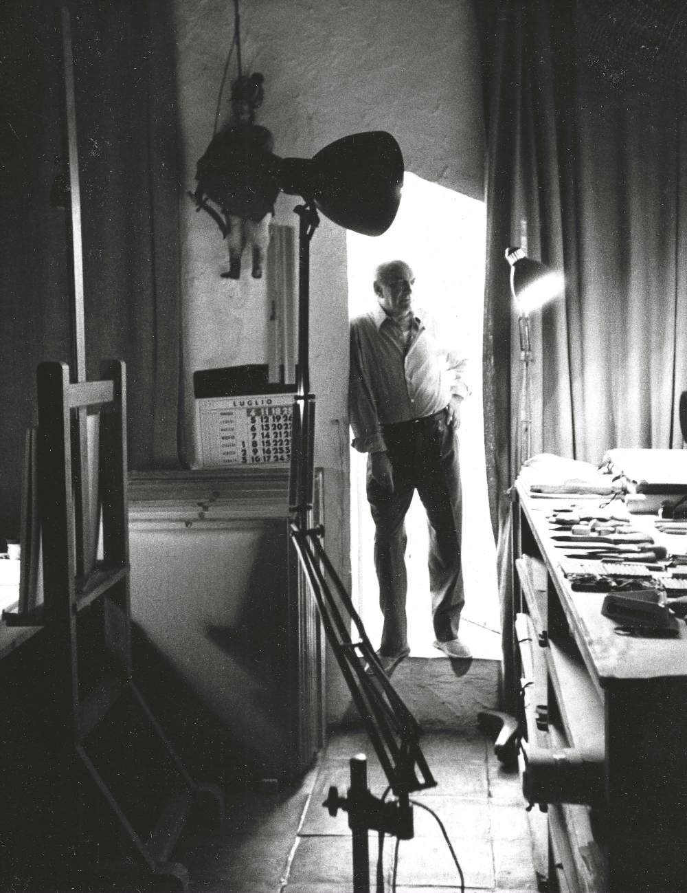Corrado Cagli nello studio di Villa del Fauno, a Taormina, nel 1968. Cortesia dell’Archivio Corrado Cagli
