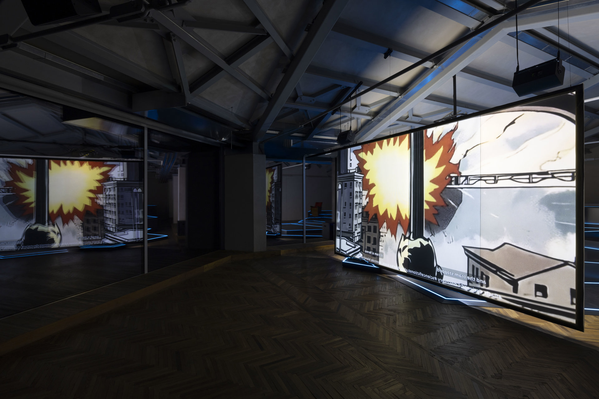 Hito Steyerl, «The Island», 2025, Milano, Osservatorio Fondazione Prada. Foto: Andrea Rossetti. Courtesy of Fondazione Prada. Courtesy dell’artista, Fondazione Prada, Andrew Kreps Gallery, New York ed Esther Schipper, Berlin/Paris/Seoul