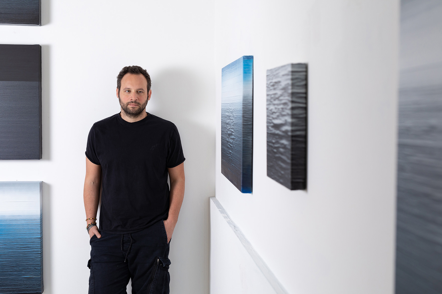 (Battipaglia, Sa, 1984) si è diplomato in Scenografia all’Accademia di Belle Arti di Napoli. La sua ricerca pittorica, basata sull’uso di nastri di carta dipinti e stratificati, crea campi cromatici vibranti in dialogo con memoria e percezione. Vincitore del Premio Cairo nel 2016, ha poi esposto in Italia e all’estero, tra cui all’Everard Read Gallery di Città del Capo, Collezione Maramotti e fiere internazionali. Nel 2025 ha inaugurato la personale «Nient’altro che Pittura» alla Galleria Alfonso Artiaco di Napoli.