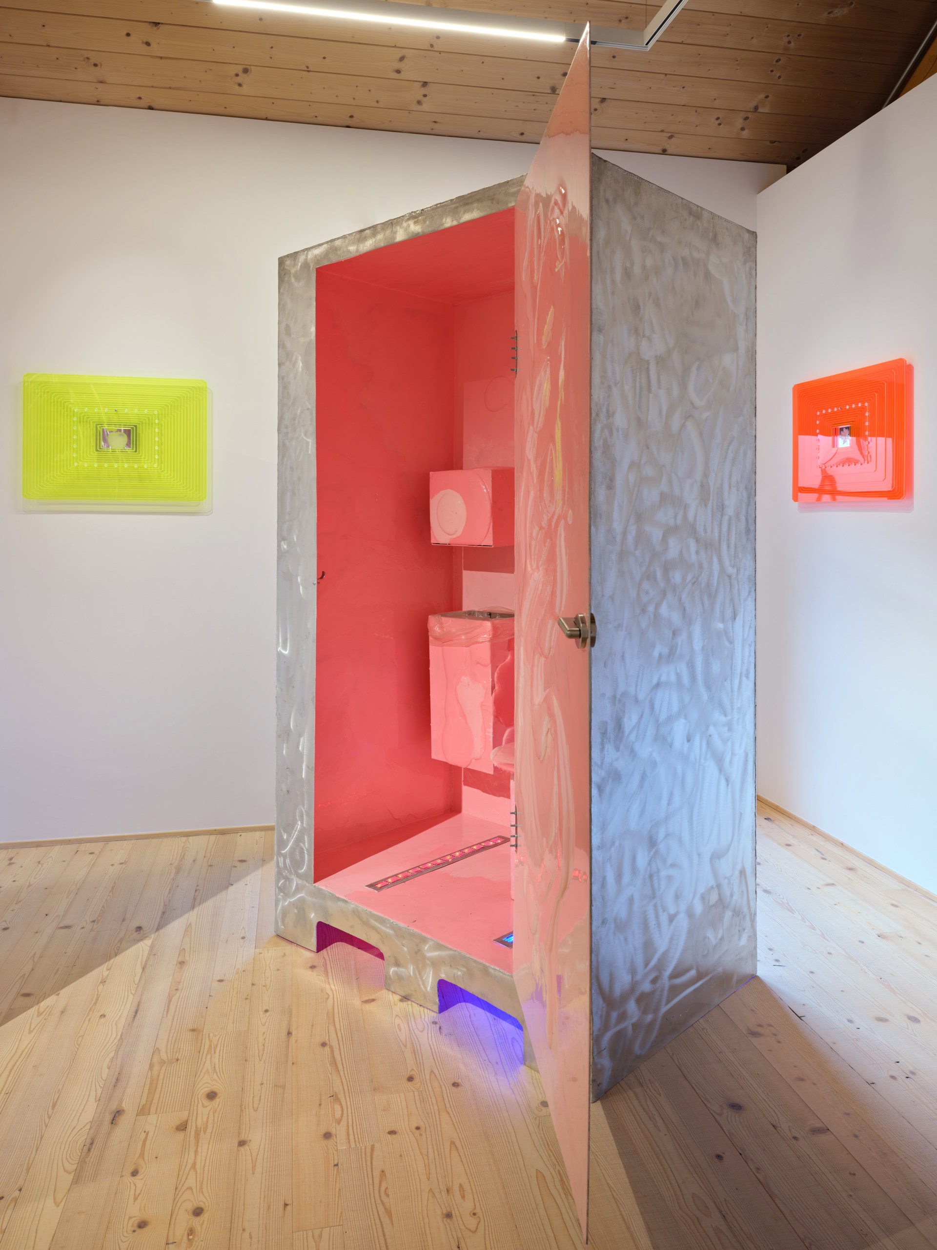 Ma come detto in apertura di articolo, non c'è accusa diretta da parte dell'artista, che ben comprende come siamo tutti, dopotutto, parte di questo meccanismo, a nostra volta incastrati in un sistema claustrofobico, da cui è difficile trovare una via di fuga. Divertenti, quelle proposte da Andersen al piano superiore. Cabin 1, 2, 3 riproducono con forme e colori accattivanti strutture che richiamano al contempo box di carico, bagni chimici o spogliatoi. Cabine che in un mondo dove gli spazi pubblici e di lavoro rischiano di sovraccaricare il nostro perimetro personale, sollecitato da criteri performativi e competitivi, possono talvolta configurarsi come come un’unità minima di protezione e di esposizione. Uno spazio in cui sostare, trasformarsi o isolarsi. Anche durante la visita della mostra.