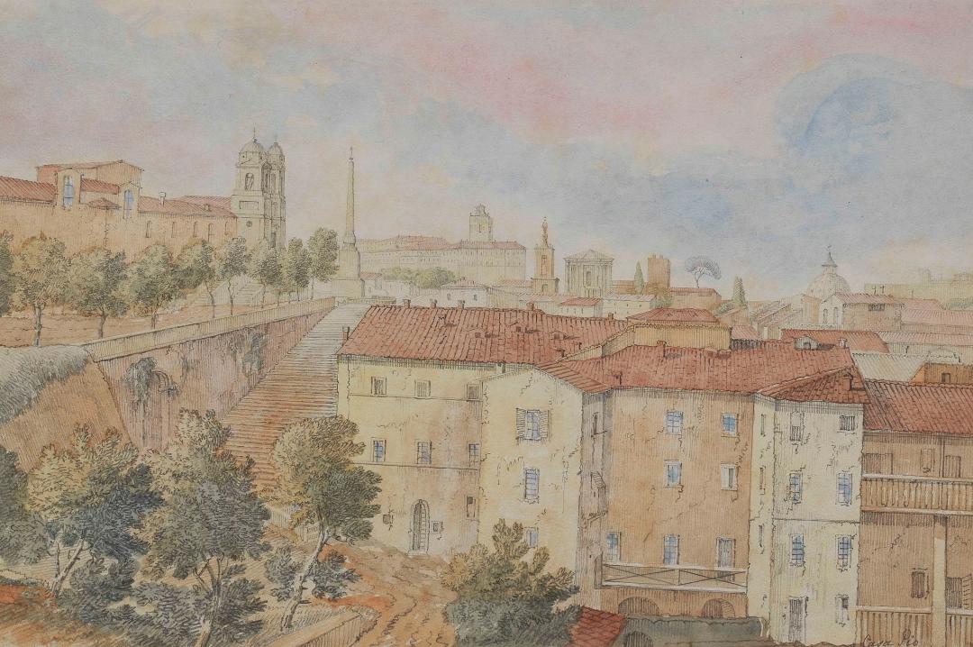 «Trinità dei Monti» (1830 ca) probabilmente attribuibile a Thomas Dessoulavy (particolare)