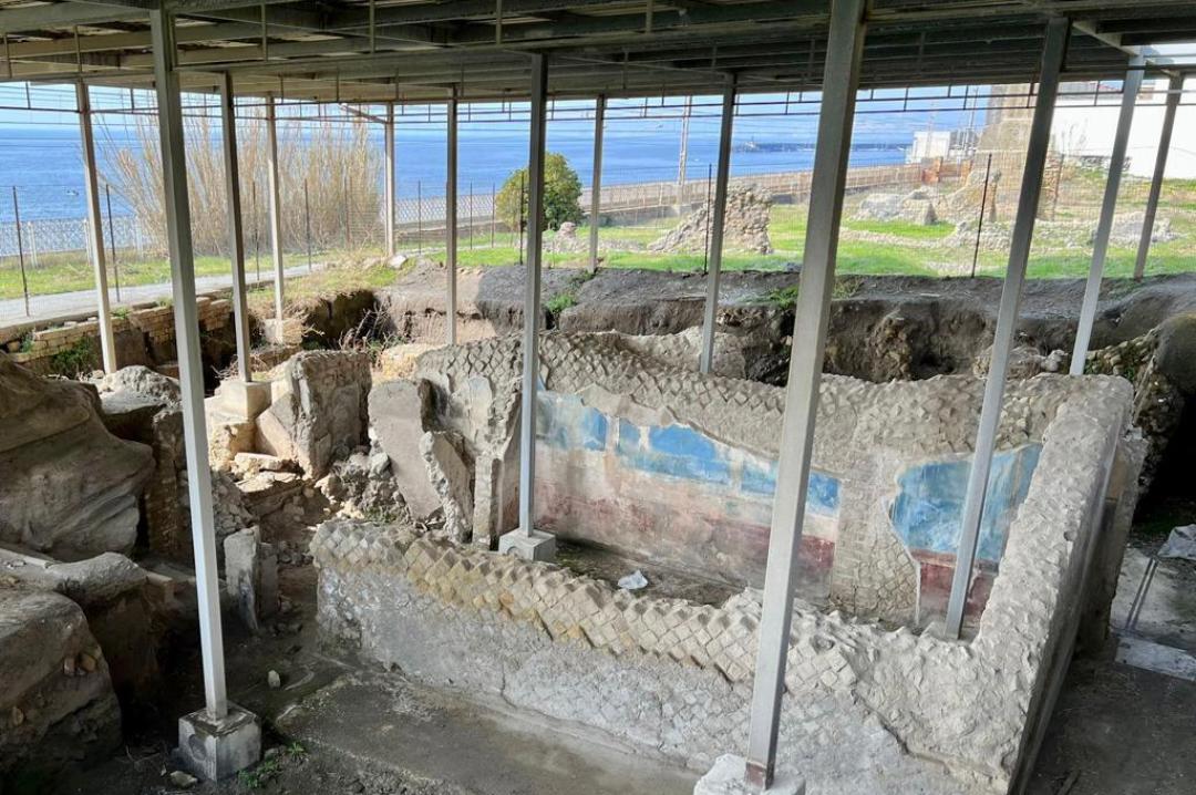 Sono state scoperte raffinate decorazioni nell’ambito delle indagini avviate per la messa in sicurezza e valorizzazione dell’importante villa marittima del golfo di Napoli, sepolta dall’eruzione del Vesuvio nel 79 d.C.