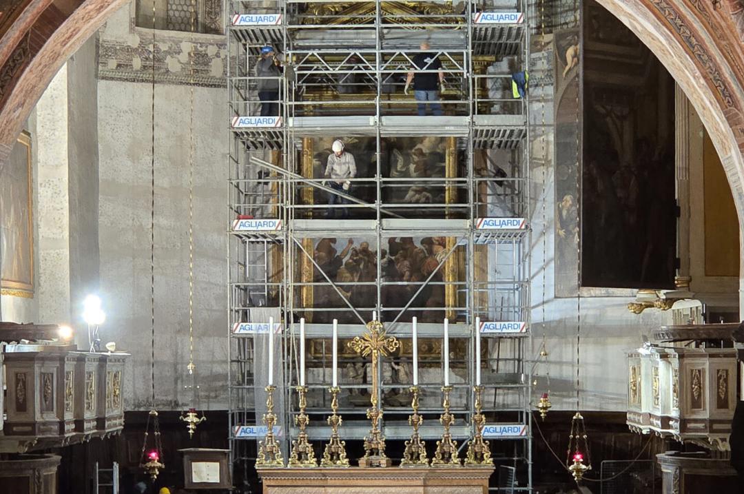 Il maltempo in Puglia ha causato il cedimento di alcuni moduli dell’installazione in fase di realizzazione nell’area archeologica di San Pietro