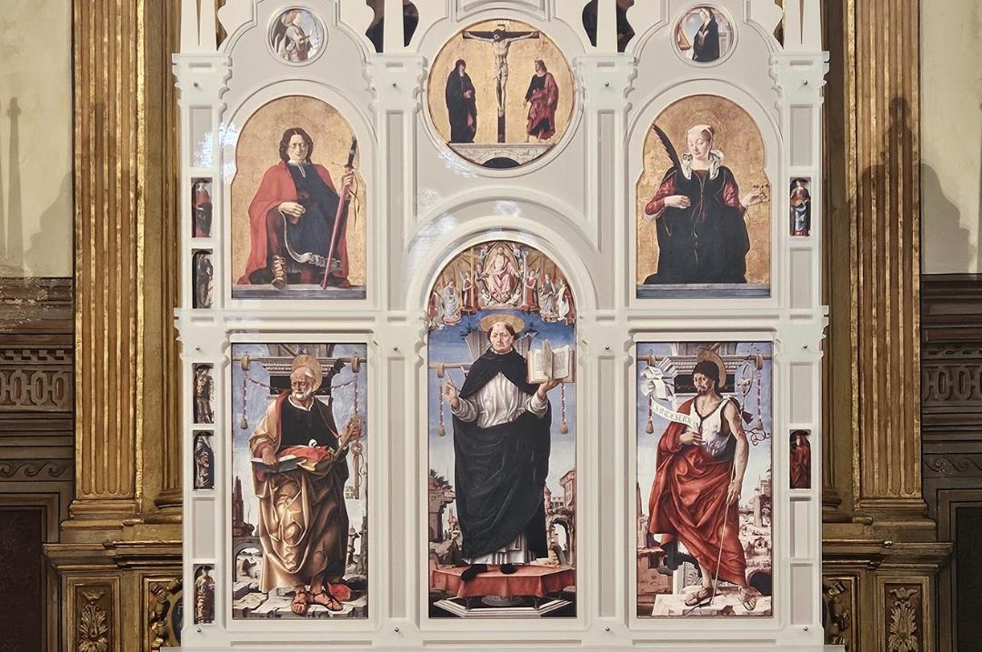Il capolavoro quattrocentesco, realizzato da Francesco Cossa ed Ercole de’ Roberti per l'altare della famiglia di mercanti nella Basilica bolognese e smembrato nell’Ottocento, è stato riprodotto con fotografie ad altissima risoluzione