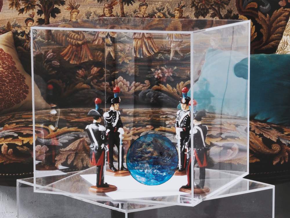Come accade nella serie delle «Sale d’attesa», del 2011-12, di cui Repetto Gallery presenta a Londra, fino al 20 settembre, una scelta di 25 opere. Sono lavori su carta e collage che mostrano il salottino (un piccolo divano piemontese del Settecento, due poltroncine in tutto) dello studio torinese di Paolini in via Po, che l’artista rappresenta qui come il luogo dell’ispirazione e della creazione.